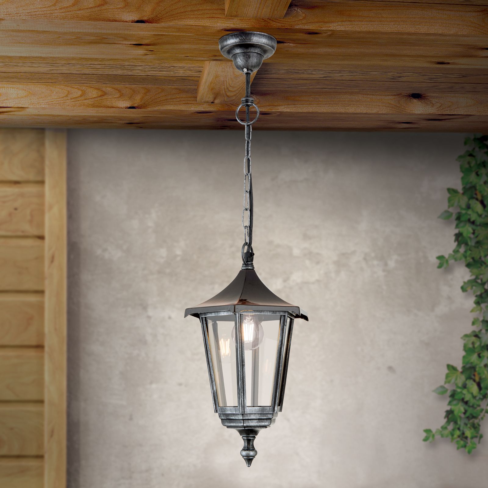 Außenhängeleuchte Hermine, Schwarz silber