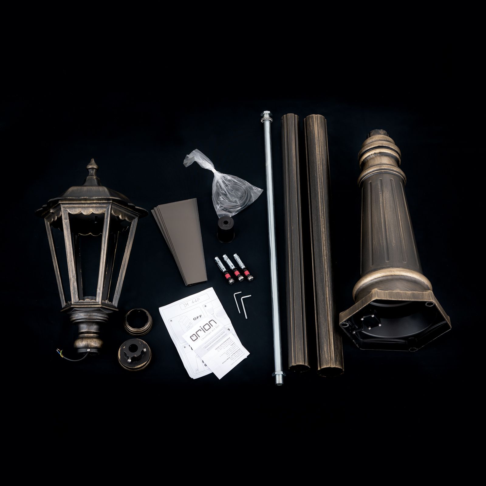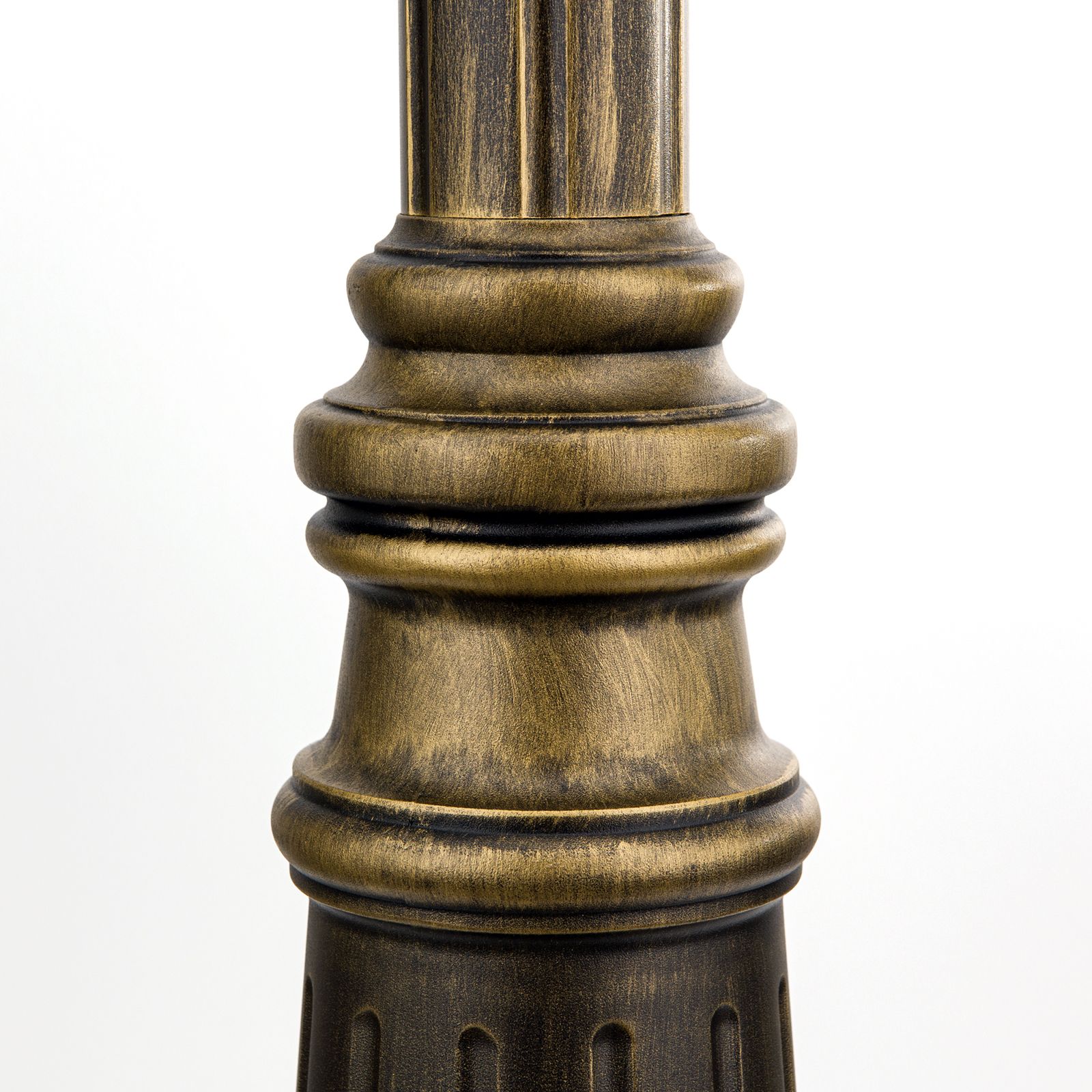 Die Mastleuchte PUCHBERG erinnert in ihrer Erscheinung an klassische Straßenlaternen vergangener Zeiten. Ihr Design hat dabei zurecht die Zeit überdauert. Die Liebe zum Detail ist vor allem in den verspielten Zierelementen zu erkennen, die charmant Laterne wie Sockel umscheicheln. Die Farbvarianten Weiß-Gold und Schwarz-Gold verleihen ihr Patina und prägen den Vintage Charakter der Leuchte.