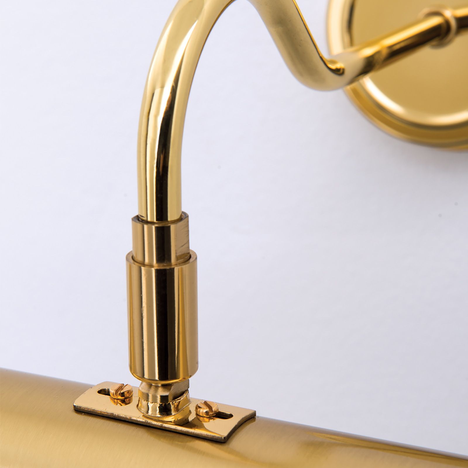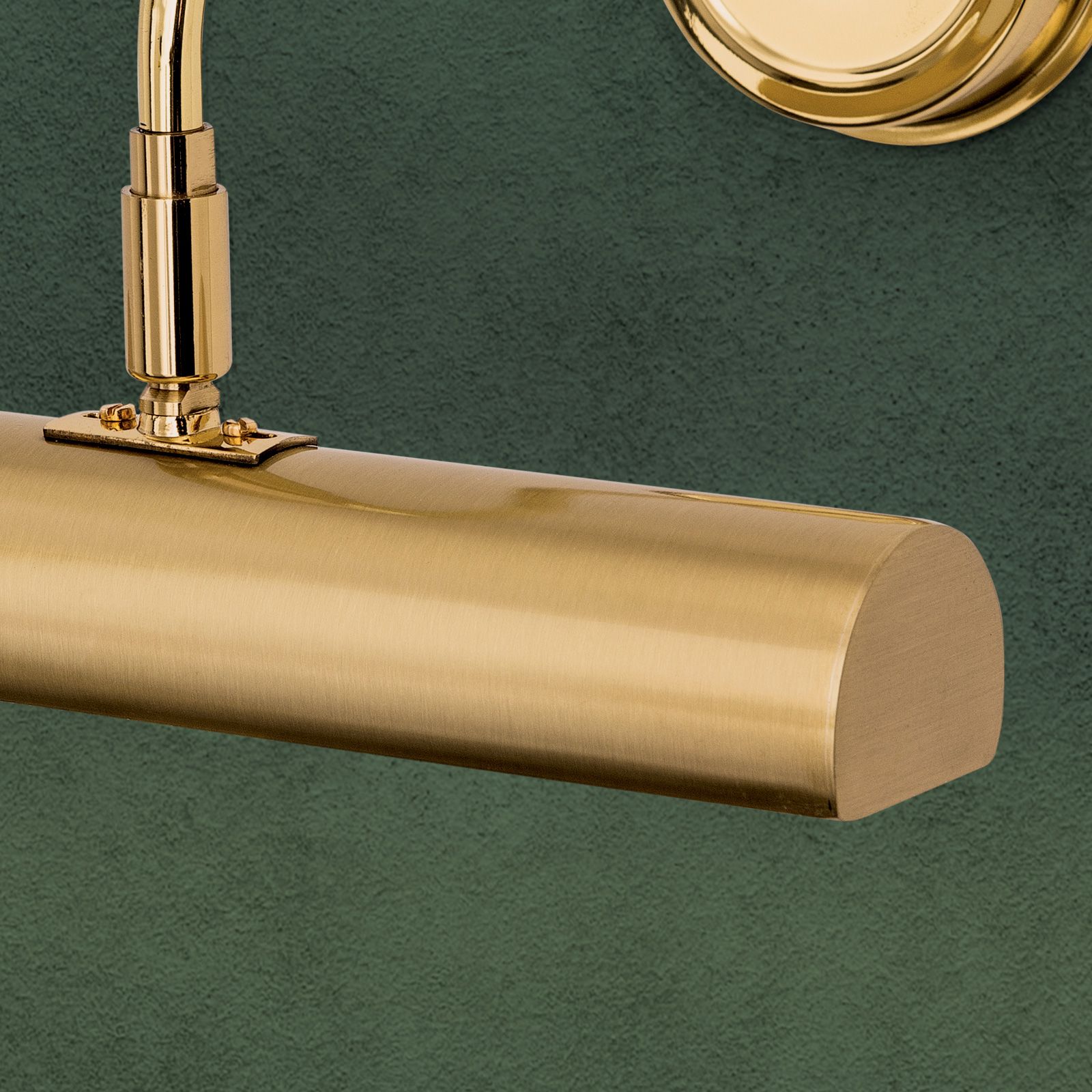 Die in der Wiener ORION Leuchtenmanufaktur aus Vollmessing hergestellte Bilderleuchte überzeugt durch ihr edles Erscheinungsbild. Die Montur und das Gestänge sind aus Vollmessing gefertigt und mit einem matten oder patinierten Finish veredelt.