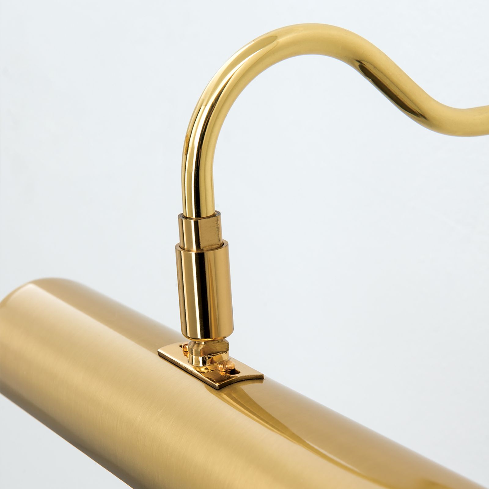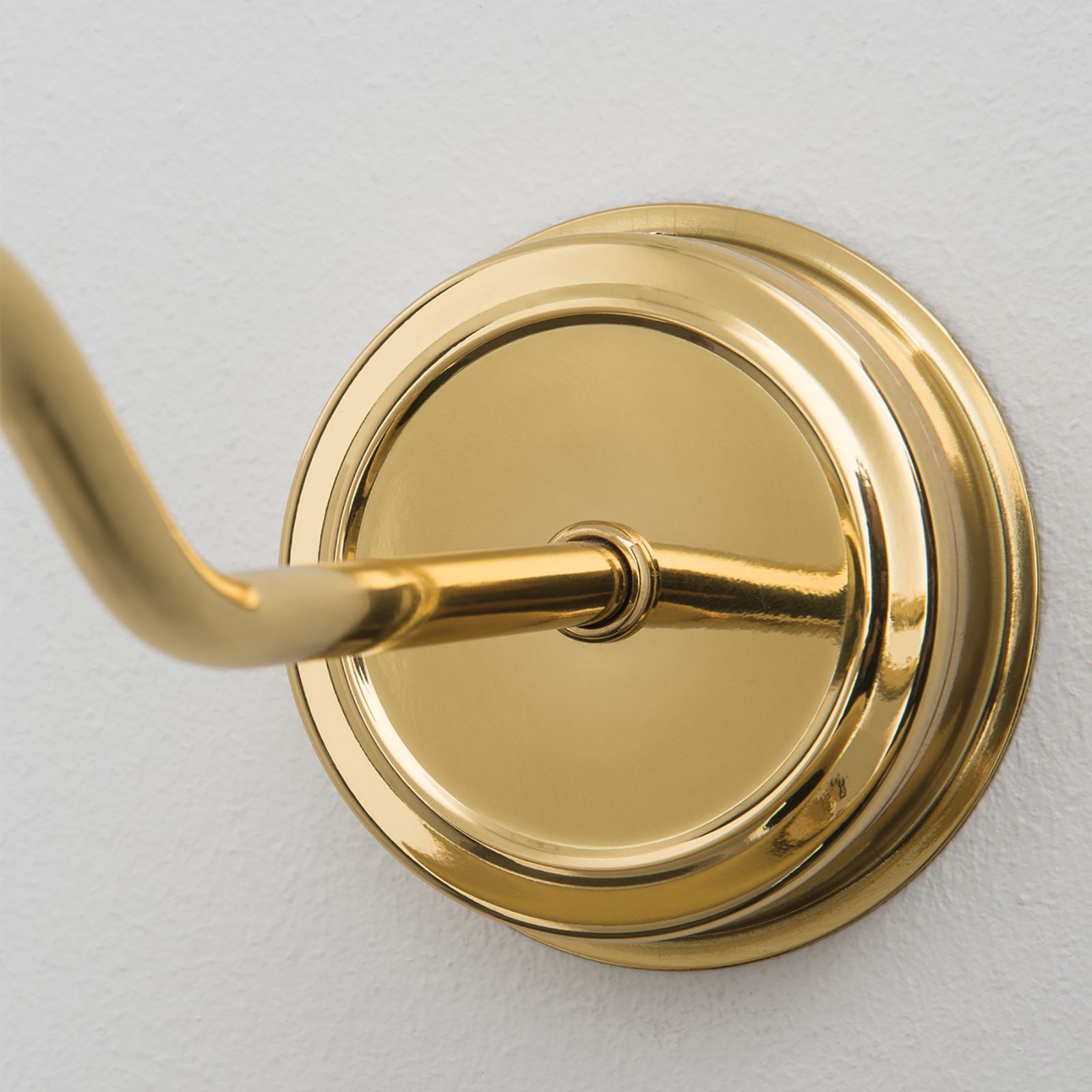 Die aus Vollmessing gefertigte Bilderleuchte hat einen schmückenden Charakter und setzt die edlen Materialien gekonnt in Szene. Ein Finish in Messing matt oder handschattierter Patina vollenden den eleganten Gesamteindruck der Leuchte, die sowohl zur Beleuchtung von Wänden, Kunstwerken als auch Spiegeln eingesetzt werden kann.