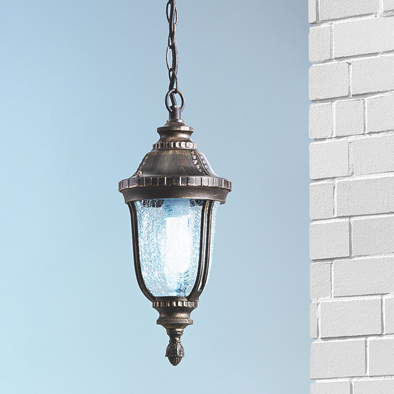 Die romantisch nostalgische Hängeleuchte AUGUST ist Teil der gleichlautenden Außenleuchten-Serie, zu der auch Mast-, Pfad-, Sockel- und Wandleuchten gehören.