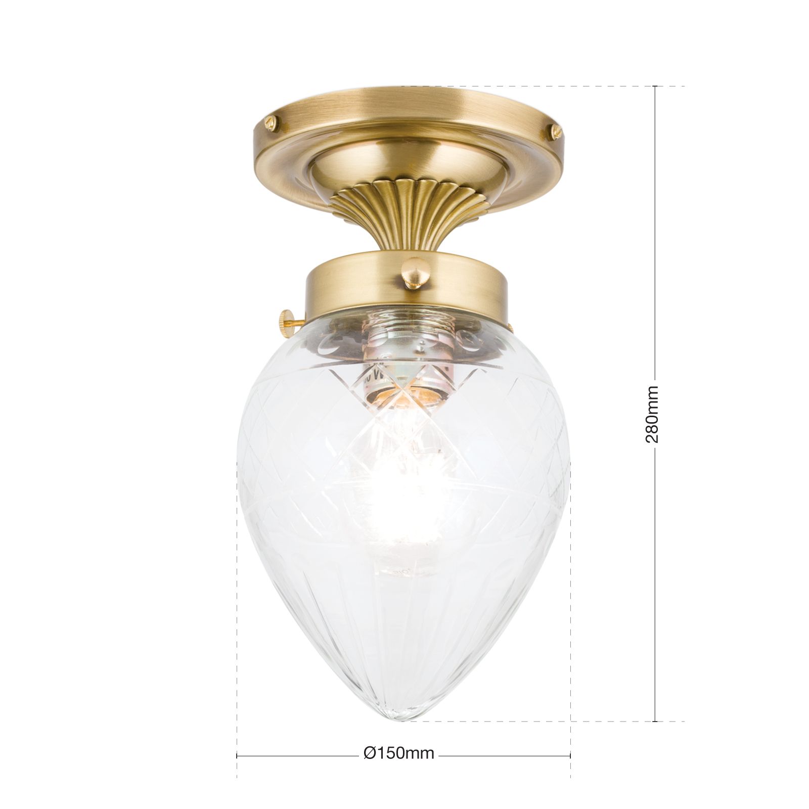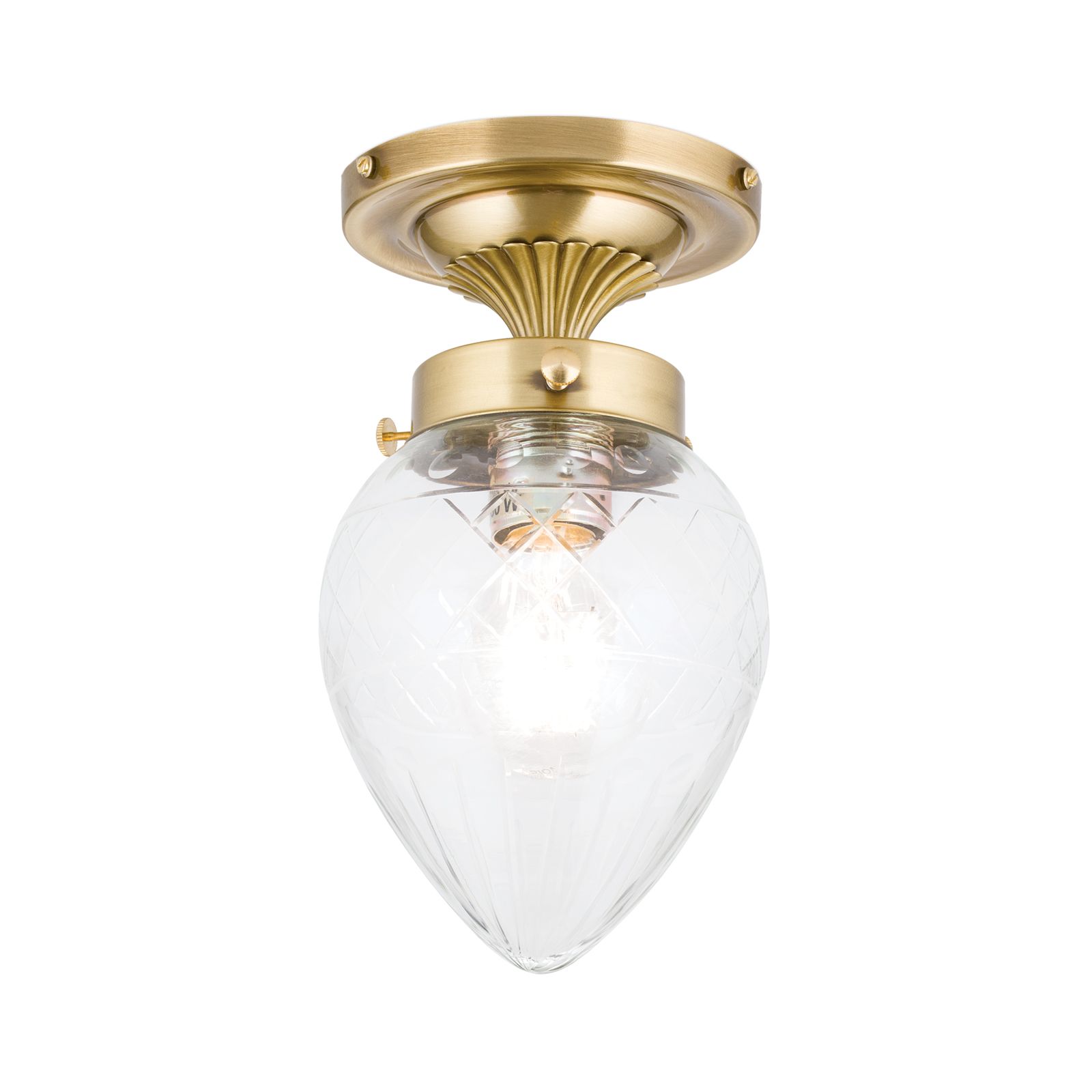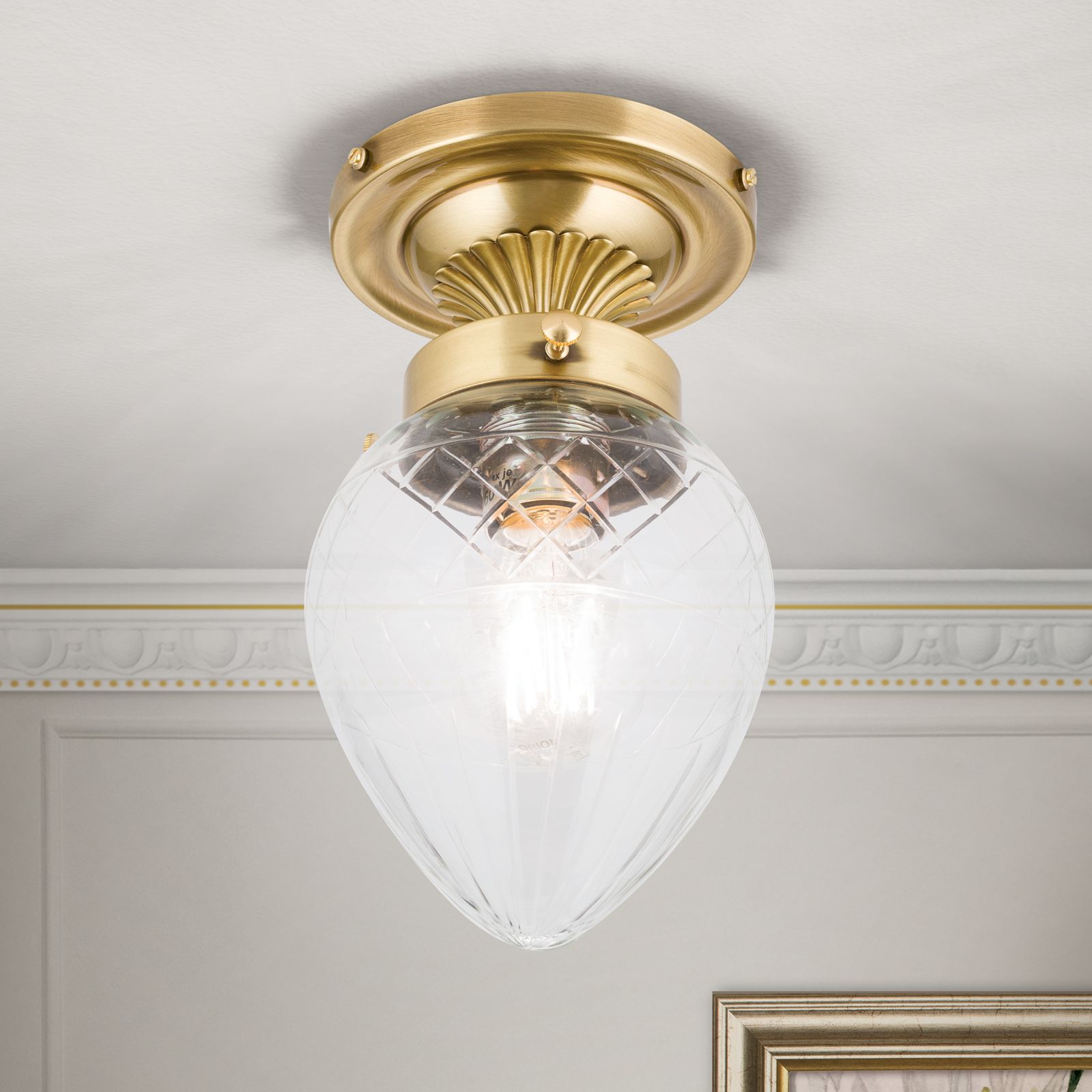 Die Deckenleuchte aus der ADELE-Serie ist eine elegante Ergänzung jedes Wohnraumes, der sich einer stilvollen Einrichtung verschreibt. Elemente des Jugendstils und des Historismus werden klug zu einem gefälligen, zeitlosen Leuchtobjekt vereinigt. Das geschliffene Glas des tropfenförmigen Schirmes bricht das Licht und gibt es facettenreich an den Raum ab. Der mit Blütenblättern verzierte Bronzesockel fügt sich elegant an den Plafond.