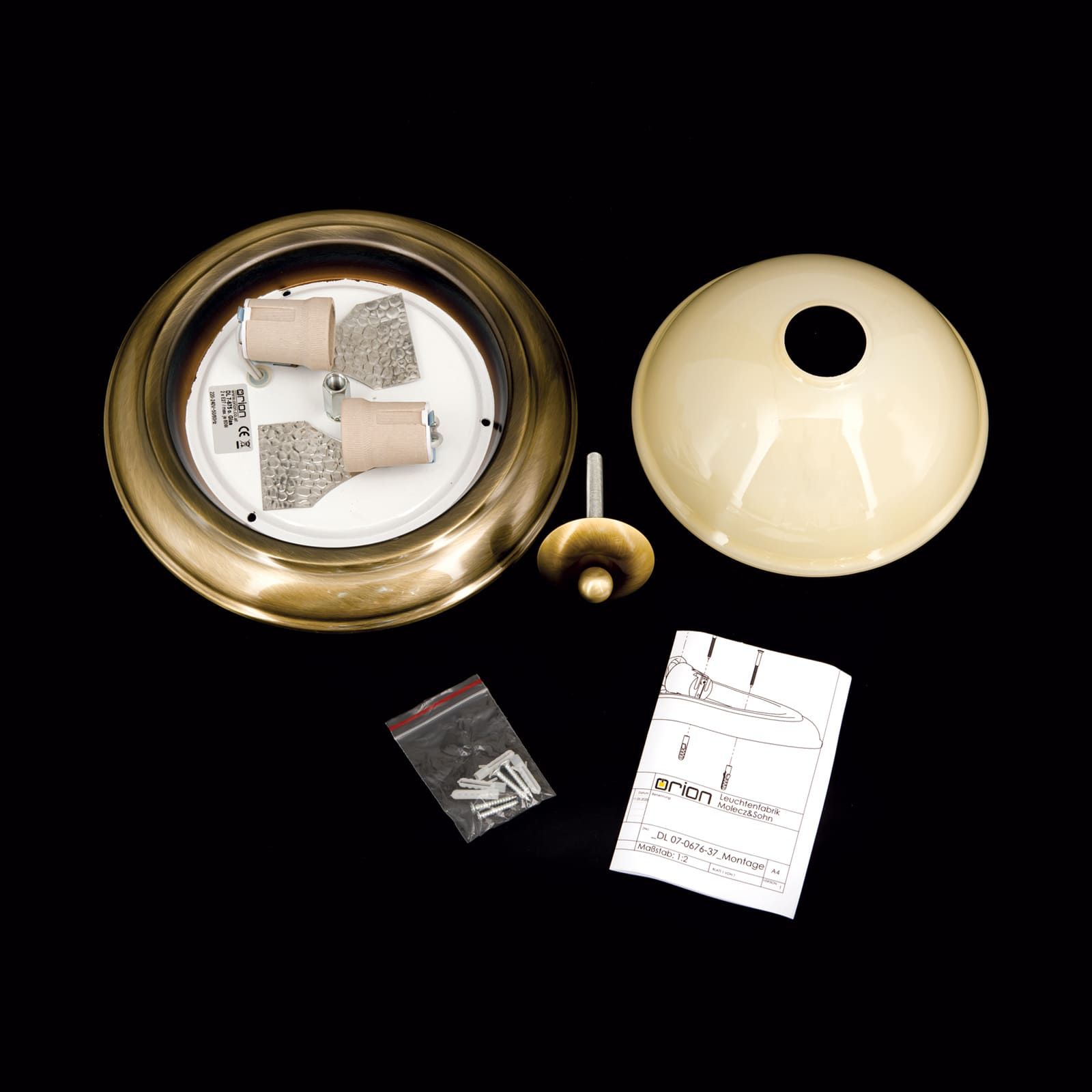 Die dimmbare Deckenleuchte ist mit E27 Fassungen ausgestattet die 2 Lampen mit max 60 Watt aufnehmen können.