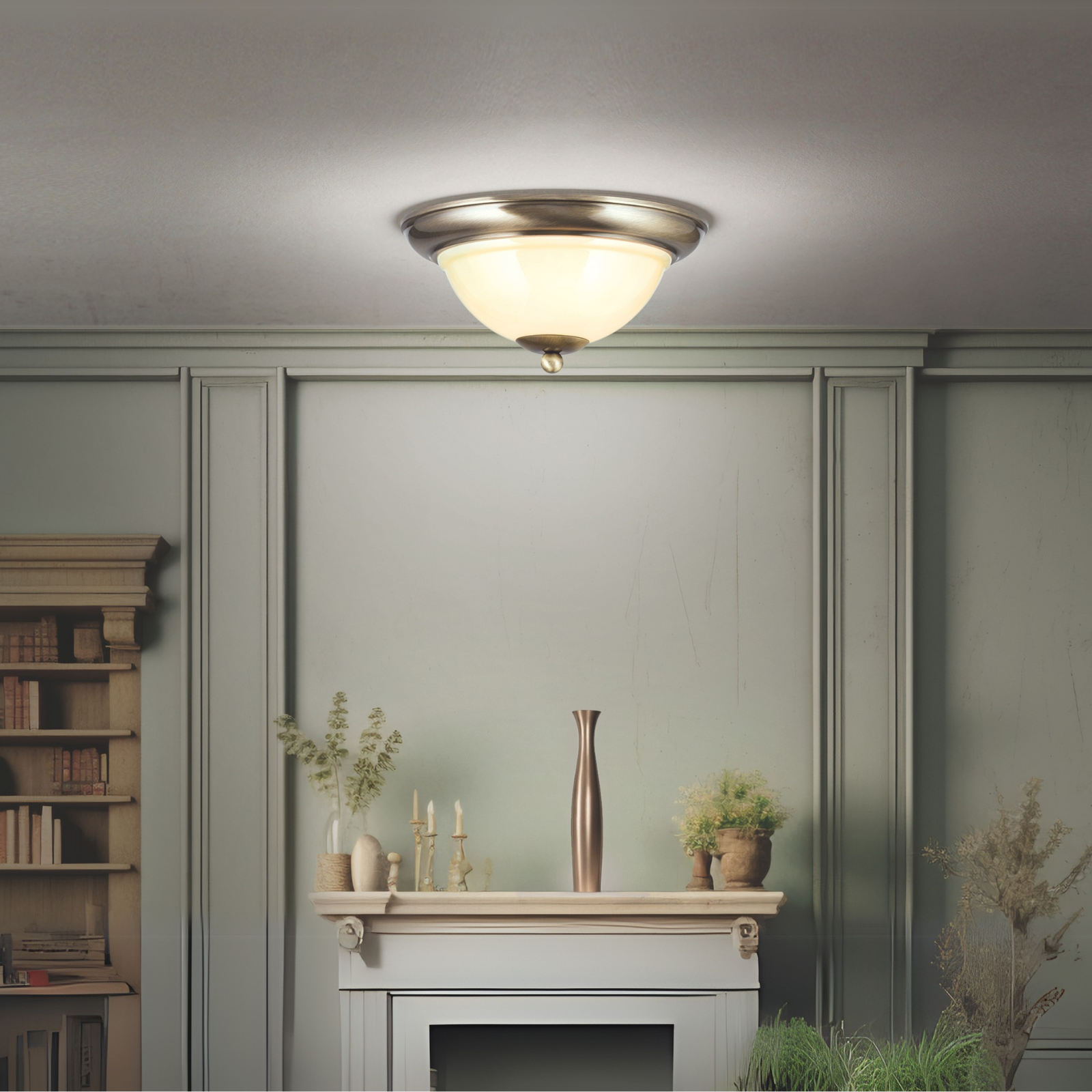 Deckenleuchte AUSTRIAN OLD LAMP, patina, mit champagner färbigem Glas, mit Knopf, Ø 27cm