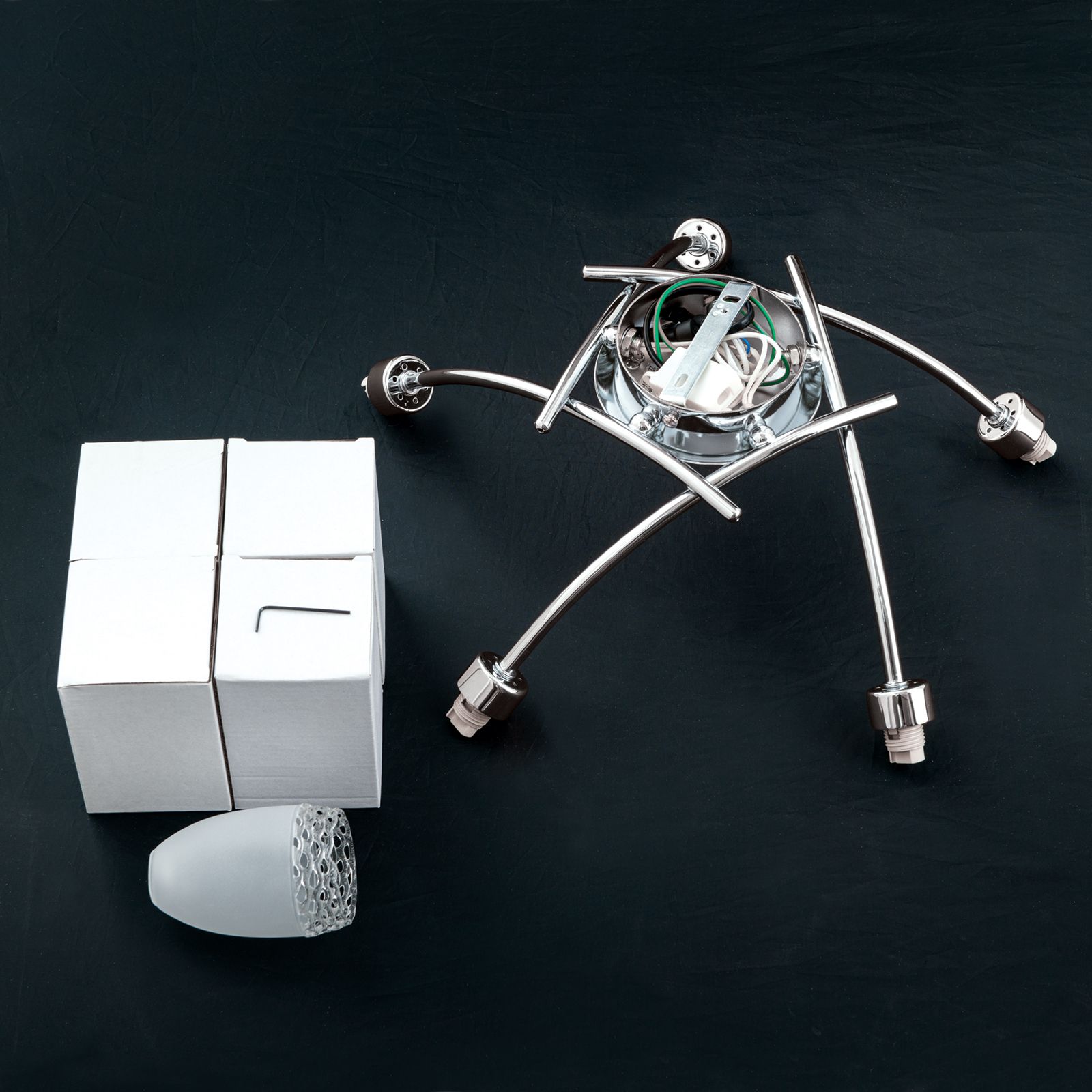 Die fünf Flammen verfügen über G9-Fassungen, die mit einer maximalen Leistung von 28 Watt bestückt werden können. Halogen-Sparlampen oder warmweiße LED-Lampen mit G9-Sockel sind die perfekte Wahl, um ein warmes und wohliges Licht zu erzeugen.