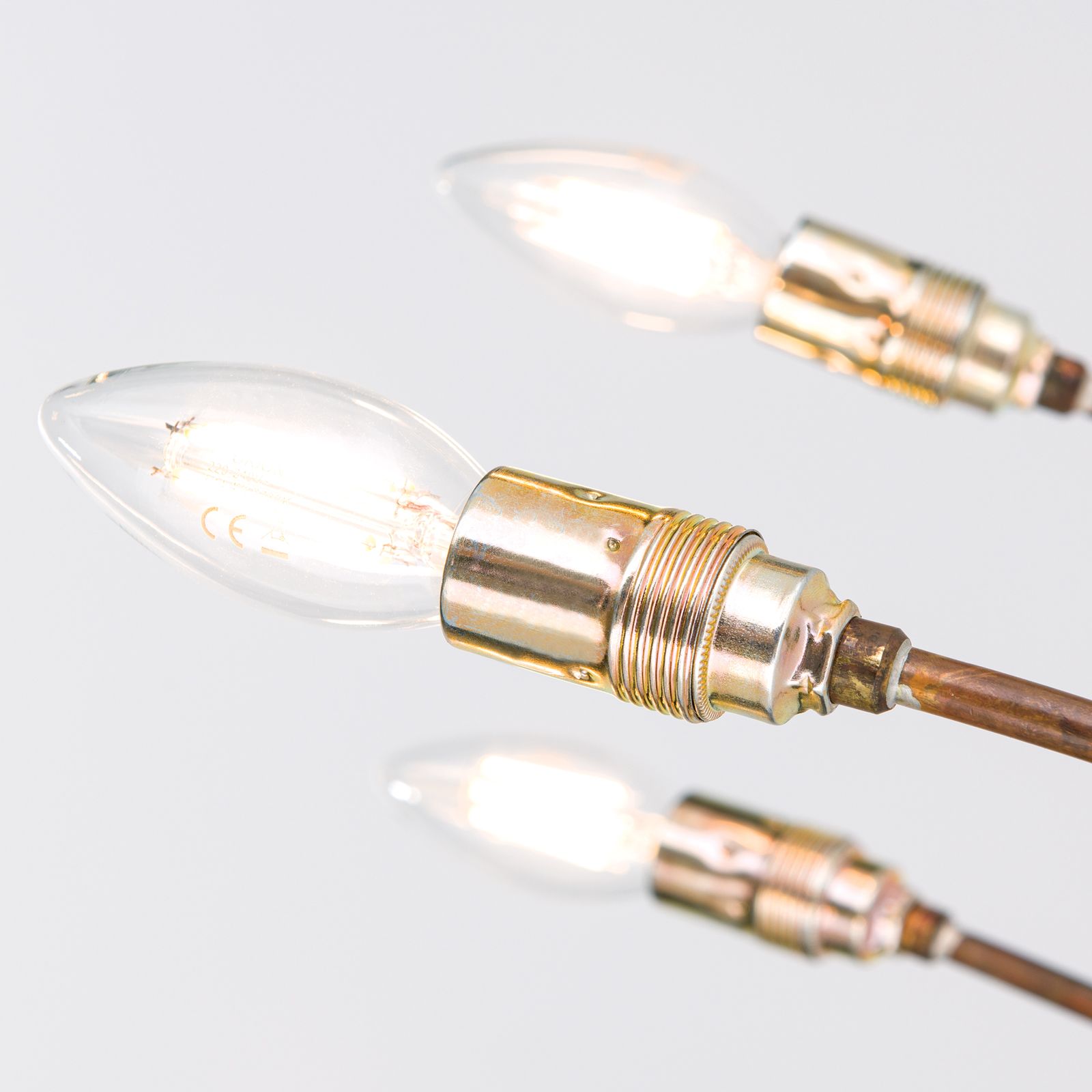 Ihren Namen verdankt die Deckenleuchten COPPY ihrem charakteristischen Kupfergestänge. Flexarme in Form roh verarbeiteter Kupferrohre ermöglichen es, diese nach eigenen Vorstellungen auszurichten und so ganz unterschiedliche Formen zu kreieren.