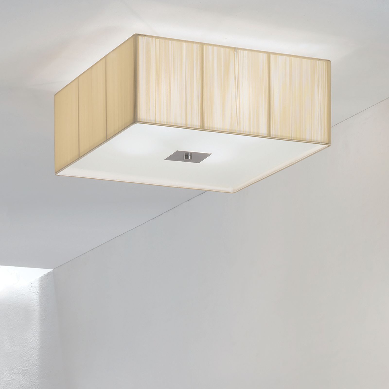 Unterschiedlichste Inneneinrichtungsstile lassen sich mit der Deckenleuchte aus der Leuchtenfamilie EMIDO aufgrund des modernen Erscheinungsbilds ausgezeichnet ins rechte Licht rücken. Die Abdeckung ist aus Stoff/Textil, der Leuchtenkörper aus Metall gemacht und mit einer Oberflächenveredelung in Satin/Nickel-matt versehen. Die Deckenleuchte ist mit 4 E27-Fassungen versehen und kann mit maximal 60 Watt je Fassung ausgestattet werden.