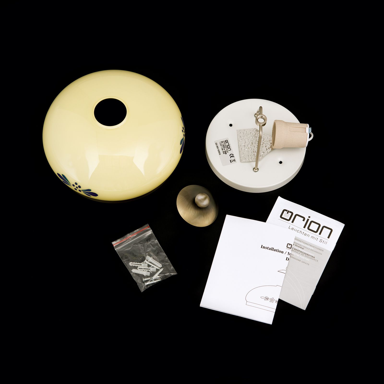 Deckenleuchte LANDHAUS, Patina, mit blauem Dekor, mit Knopf, Ø 21cm