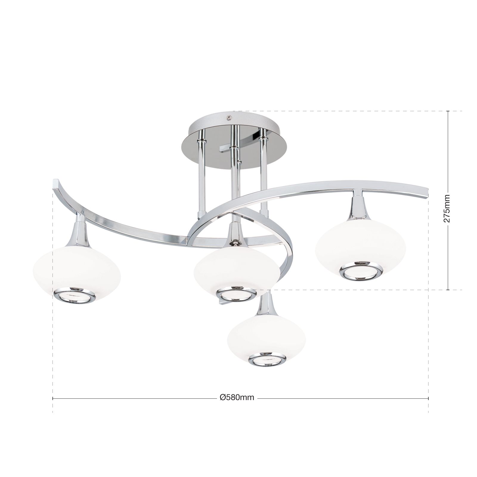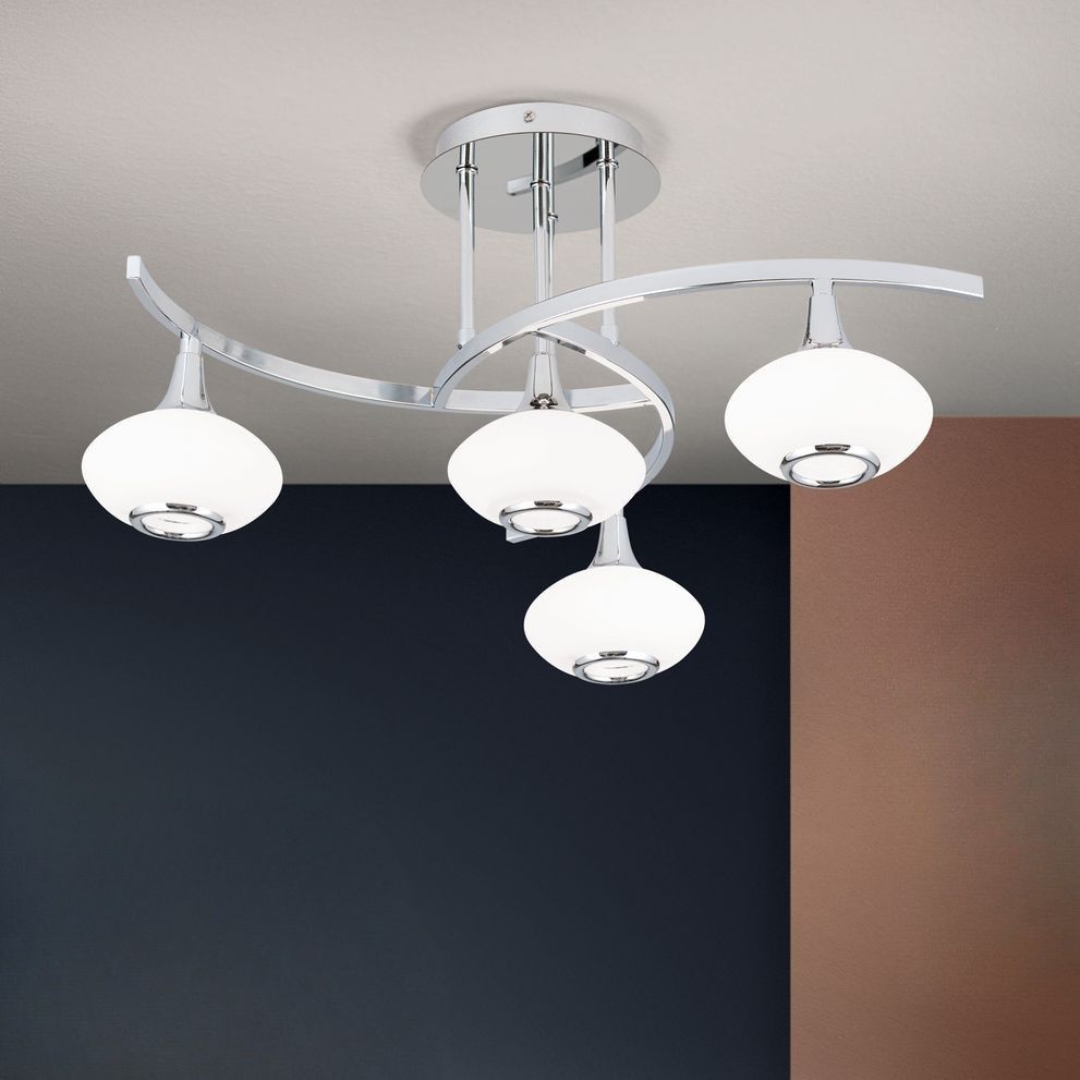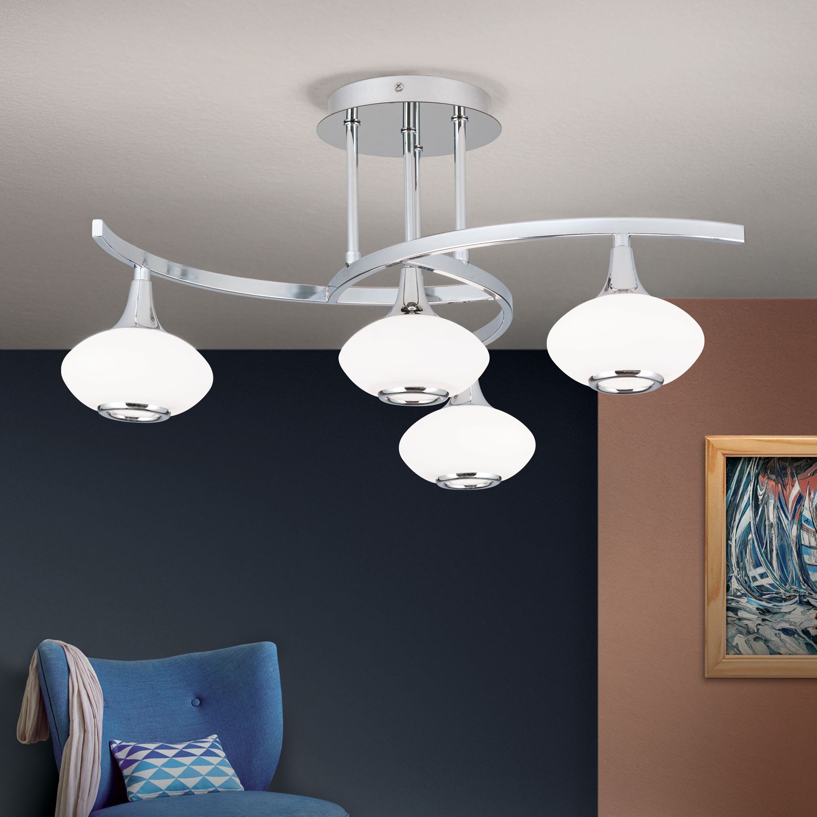 Verchromter Stahl und hochwertige Opalglasschirme verleihen der Esszimmerleuchte LIA Eleganz und Langlebigkeit. Die dimmbare Leuchte in zeitgemäßem Stil lässt sich ausgezeichnet mit schlicht und elegant gehaltenen Interieurs kombinieren. Die Deckenleuchte ist mit vier G9-Fassungen versehen und kann mit maximal 33 Watt je Fassung betrieben werden. Die elliptischen opalmatten Schirme geben ein weiches, gleichmäßiges Raumlicht und eignen sich besonders für matte Stiftsockellampen.