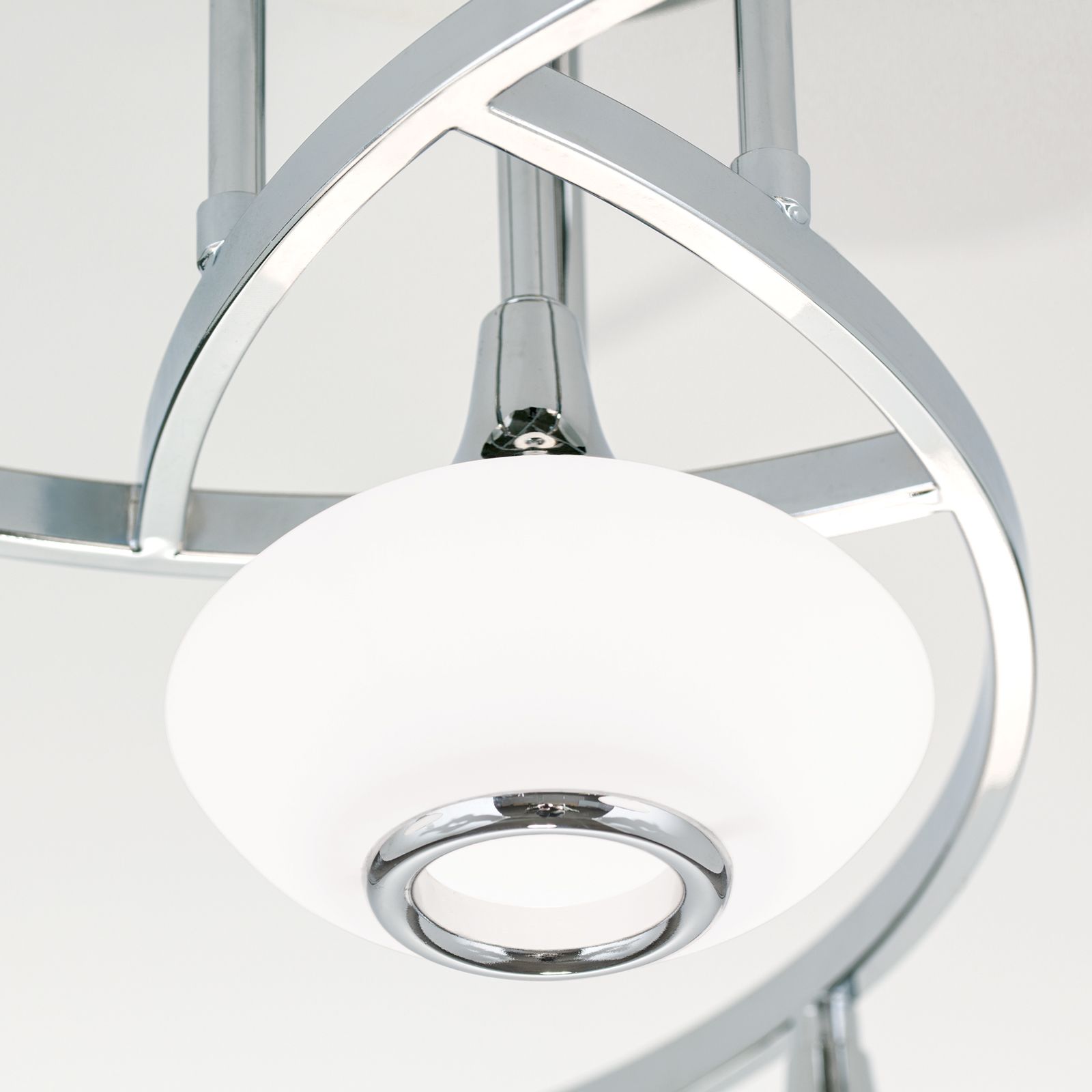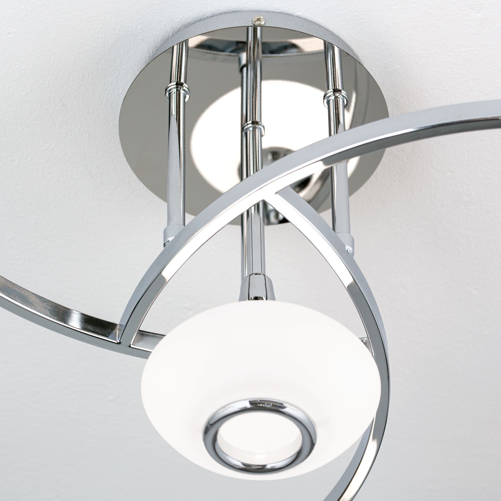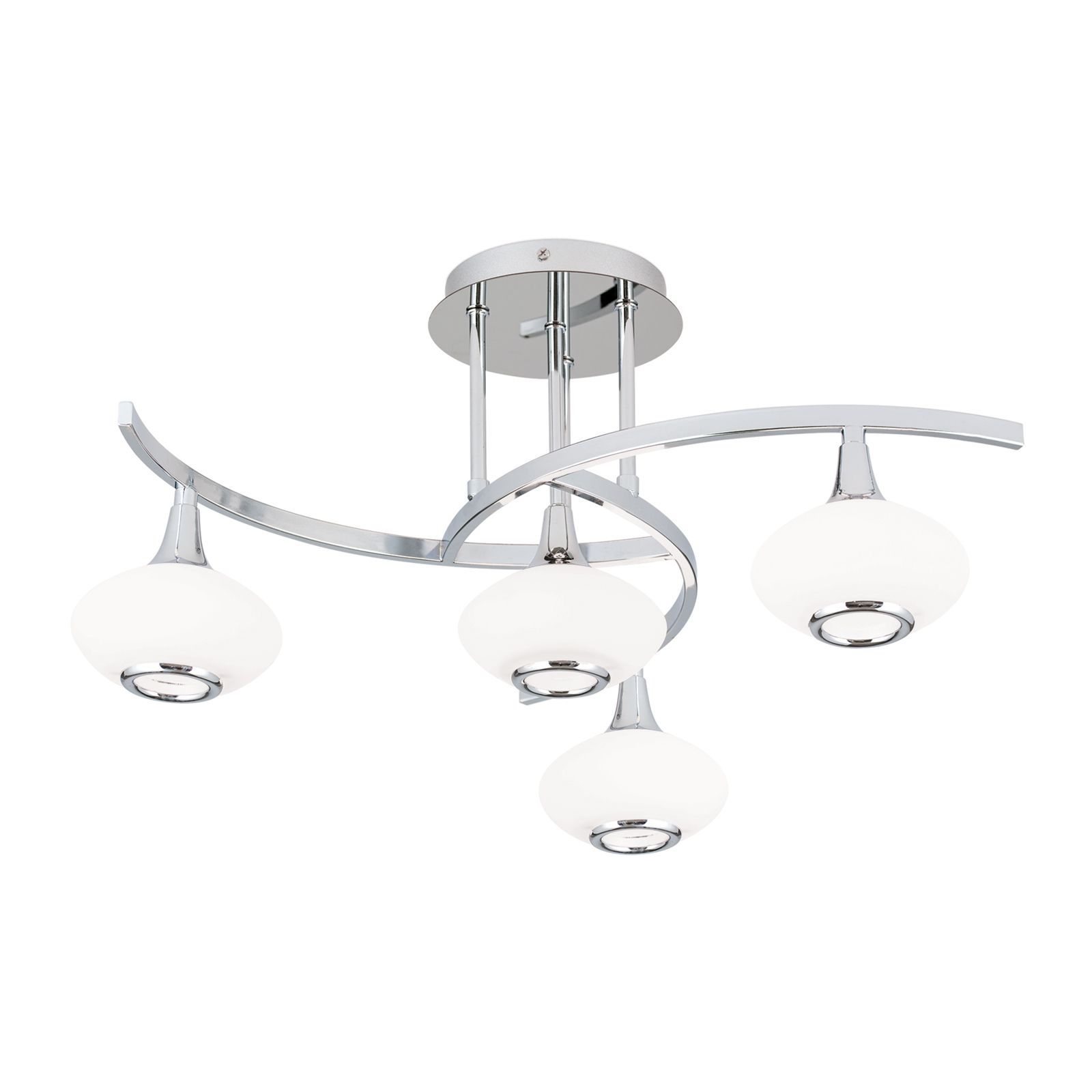 Verchromter Stahl und hochwertige Opalglasschirme verleihen der Esszimmerleuchte LIA Eleganz und Langlebigkeit. Die dimmbare Leuchte in zeitgemäßem Stil lässt sich ausgezeichnet mit schlicht und elegant gehaltenen Interieurs kombinieren. Die Deckenleuchte ist mit vier G9-Fassungen versehen und kann mit maximal 33 Watt je Fassung betrieben werden. Die elliptischen opalmatten Schirme geben ein weiches, gleichmäßiges Raumlicht und eignen sich besonders für matte Stiftsockellampen.