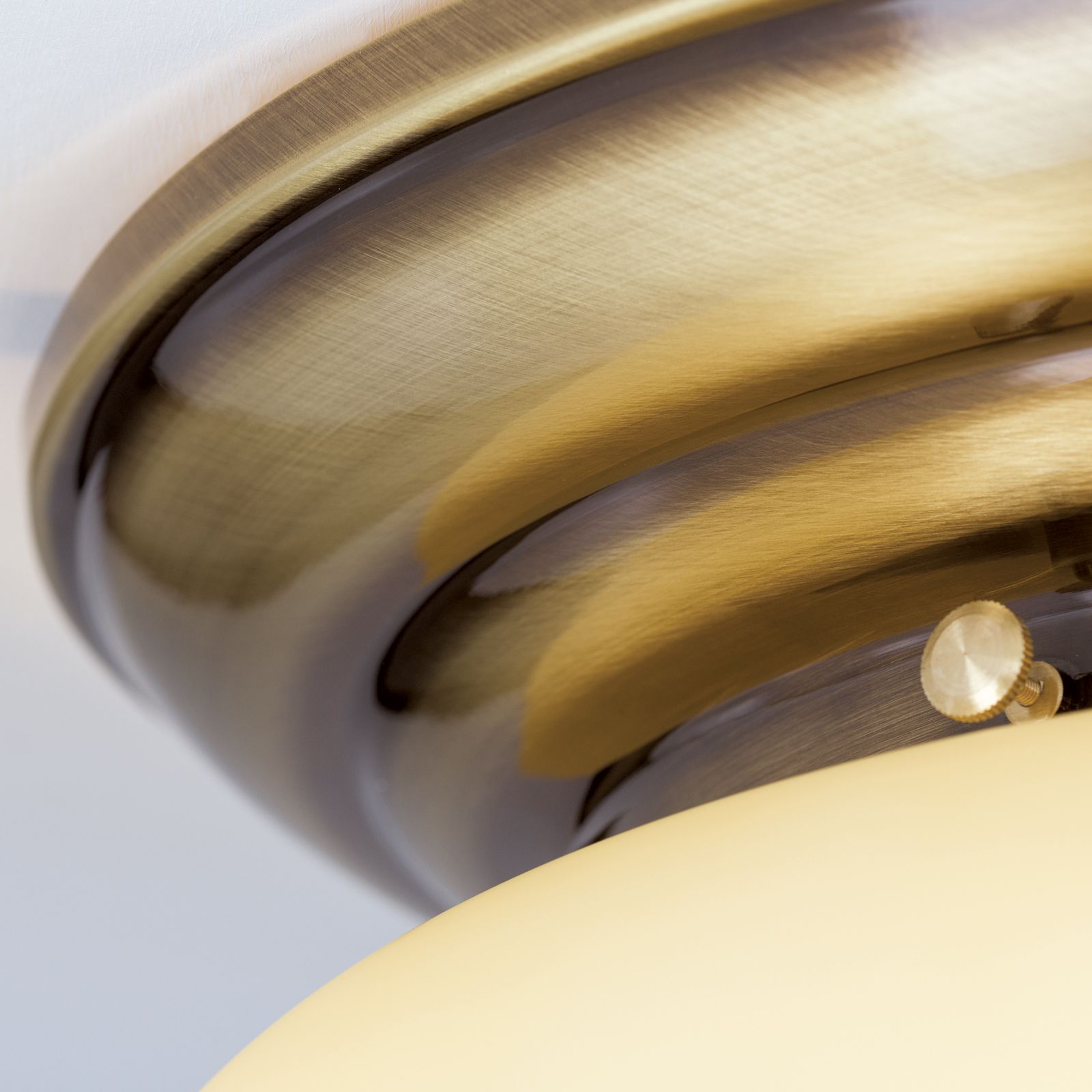 Diese Deckenleuchte ist ebenso patiniert mit champagne mattem Glas verfügbar.