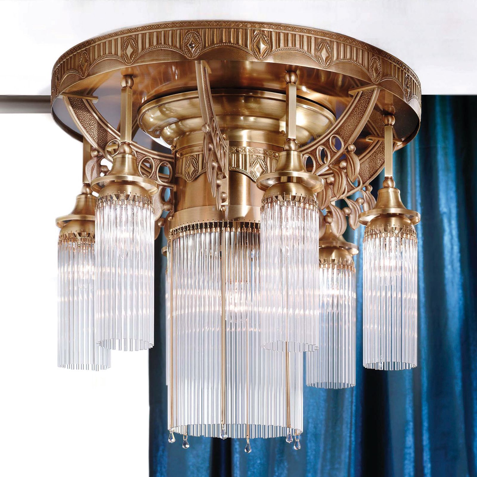 Freude am Ornament zeichnet den Secessionsstil aus. Ein fröhlicher Überschwang im Sinne des Frühlingserwachens charakterisiert auch den 7-flammigen Deckenluster aus der ADELE-Kollektion.