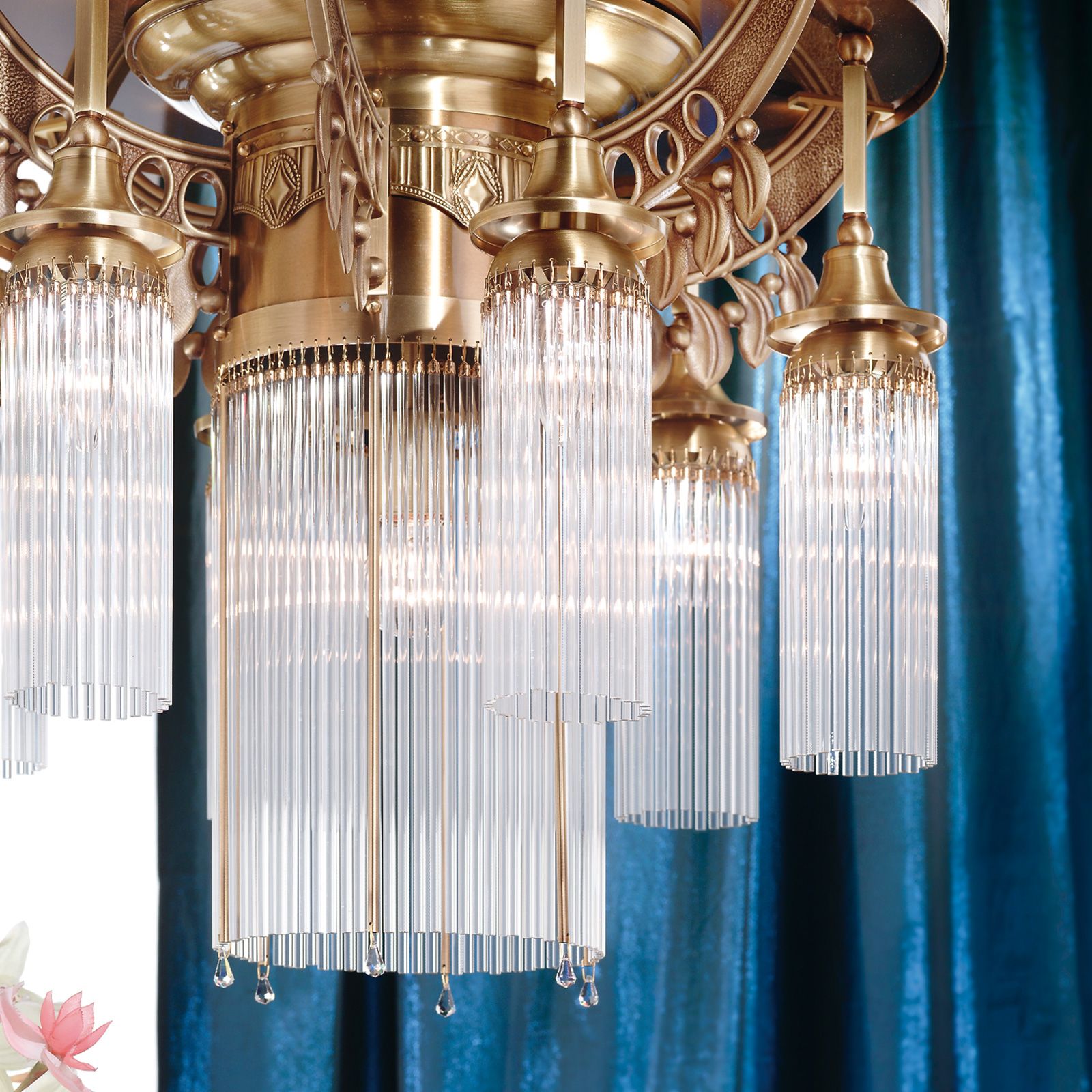 Deckenluster ADELE, 7-flammig, Altmessing, mit Stäbchen