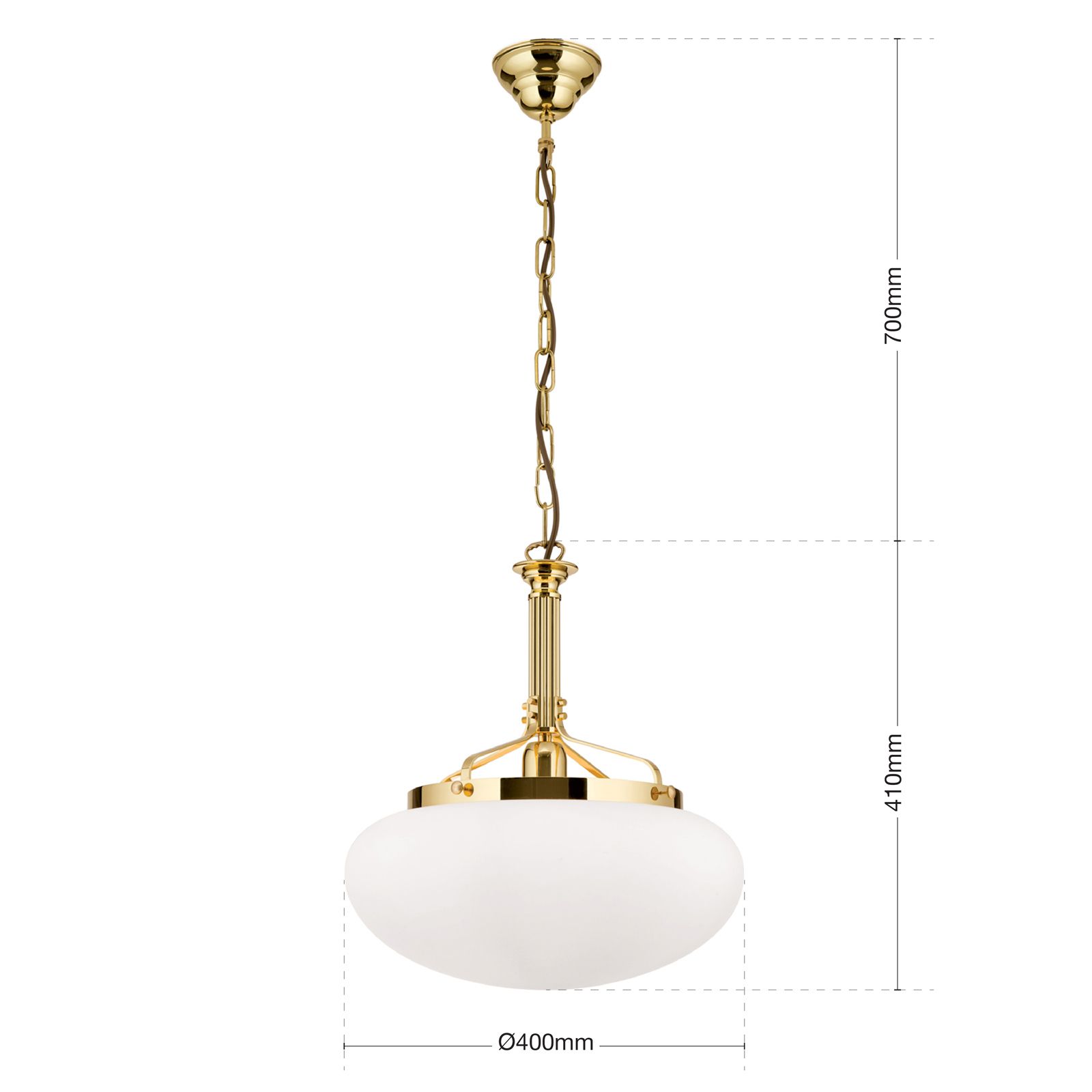 Hängeleuchte WIENER NOSTALGIE, Messing-glänzend, mit opal mattem Glas, 40cm