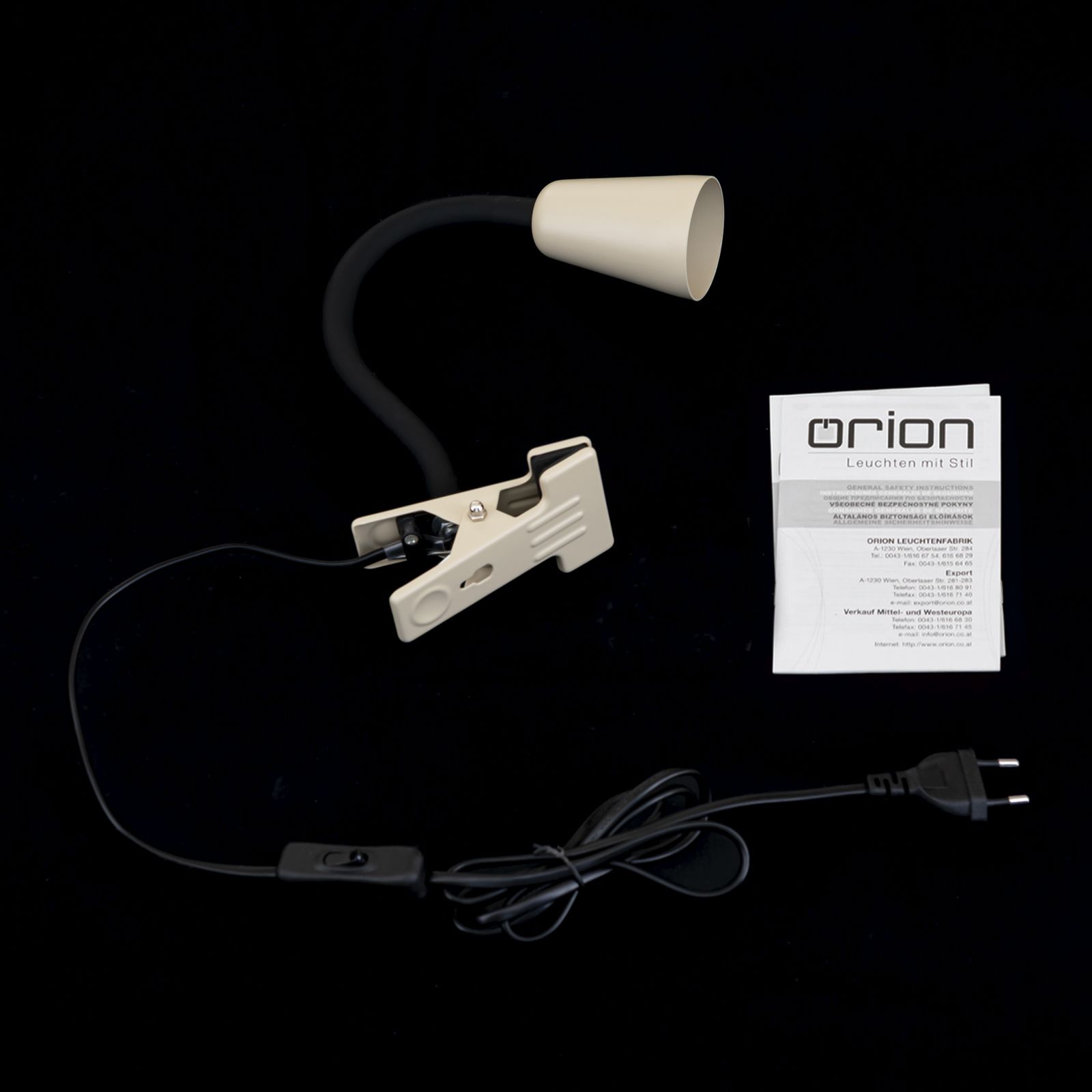 - Khaki: Leuchtenkopf und Metallklemme in harmonischem Khaki