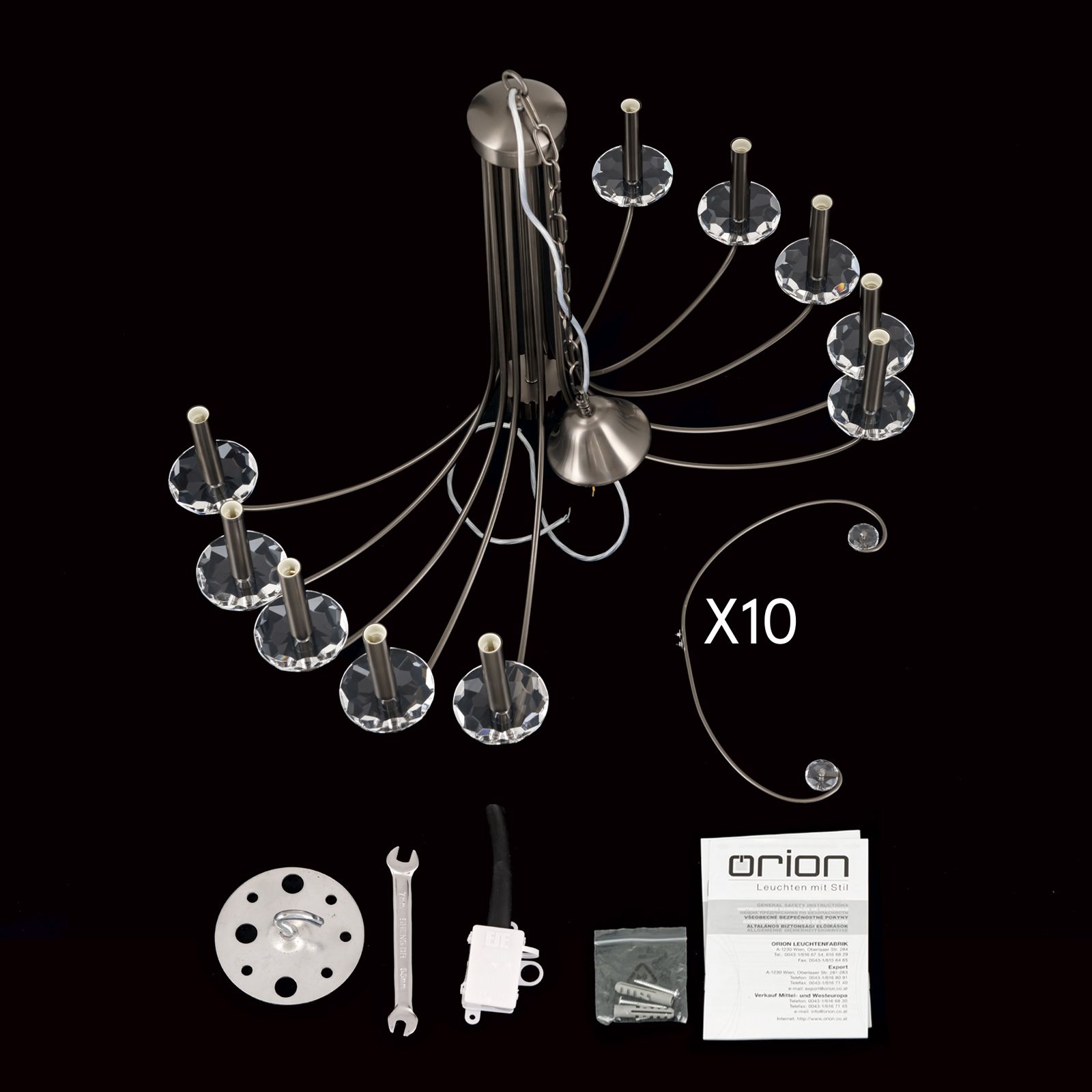 Die Ketten-Abhängung ist vor der Montage kürzbar, sodass Sie die Höhe nach Ihren persönlichen Vorlieben und den Anforderungen Ihres Raumes anpassen können. Egal, ob Sie nach einem beeindruckenden Mittelpunkt für Ihr Wohnzimmer oder nach einer glamourösen Beleuchtungslösung für Ihren Essbereich suchen, der ADRIANE Kristalluster von ORION wird Ihren Raum in ein strahlendes Meisterwerk verwandeln.