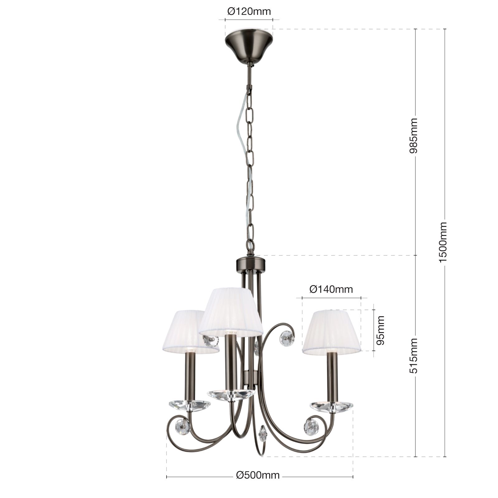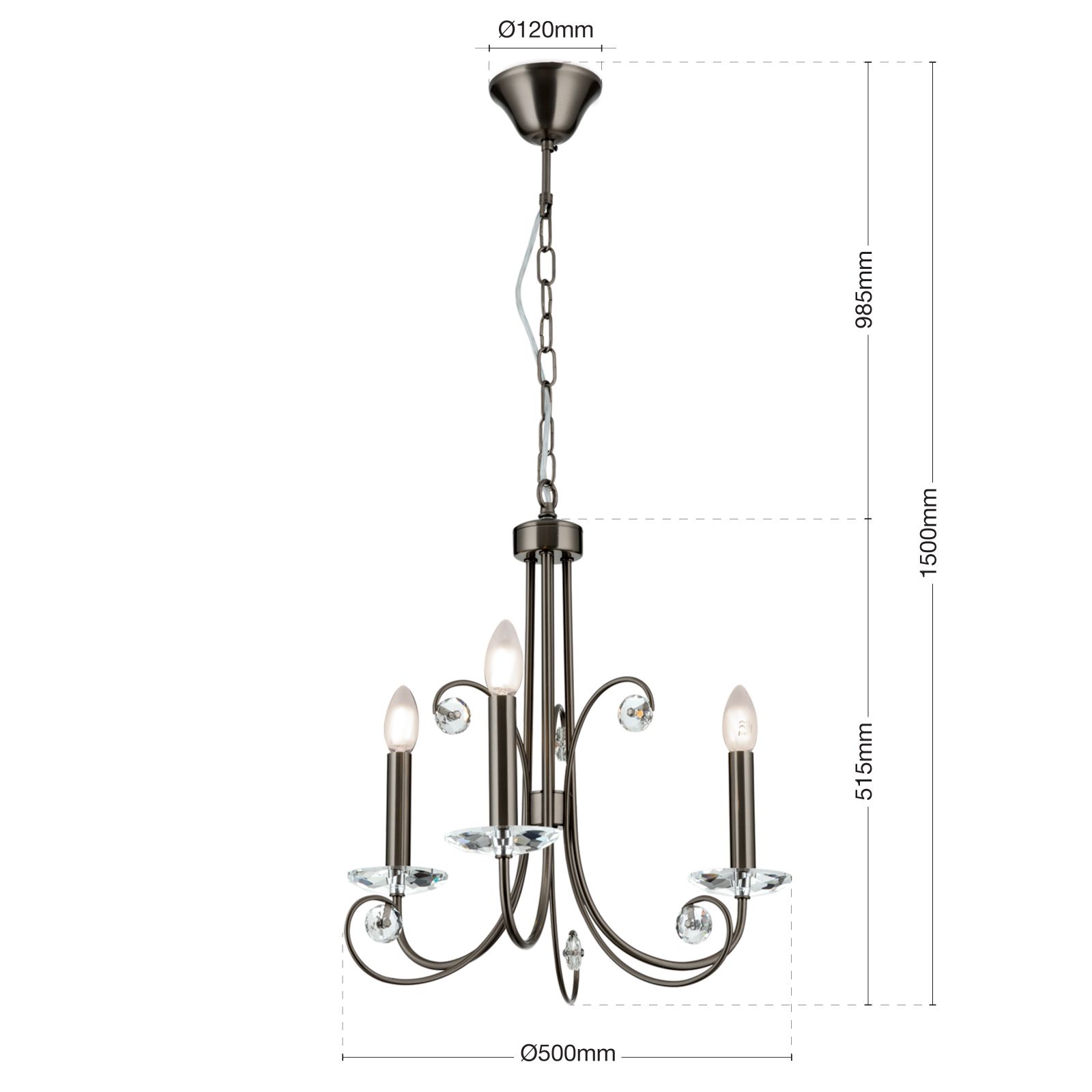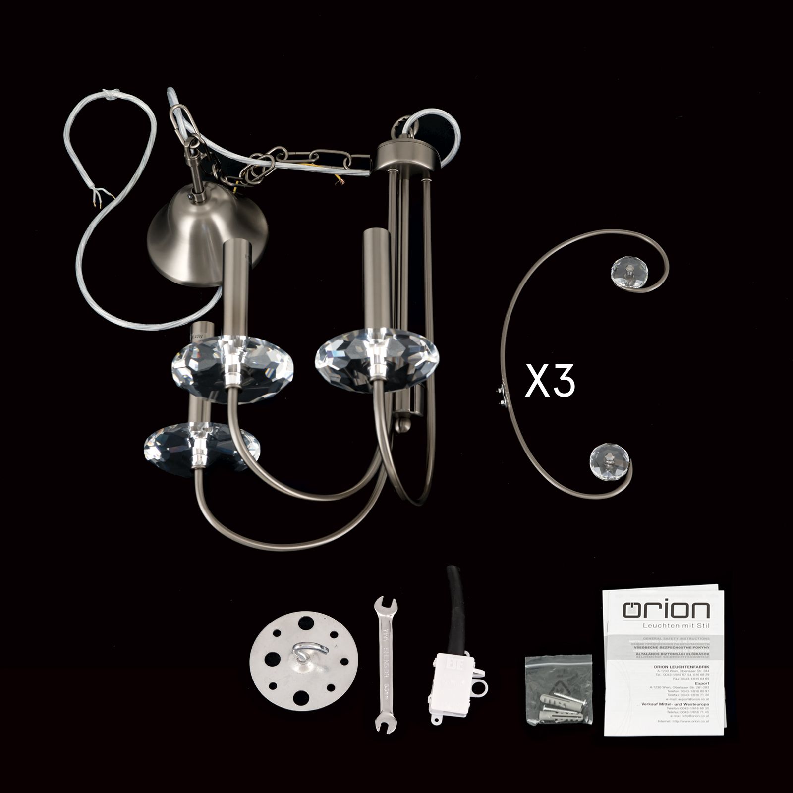 Kristallluster ARIANE, 3-flammig, Dark-nickel