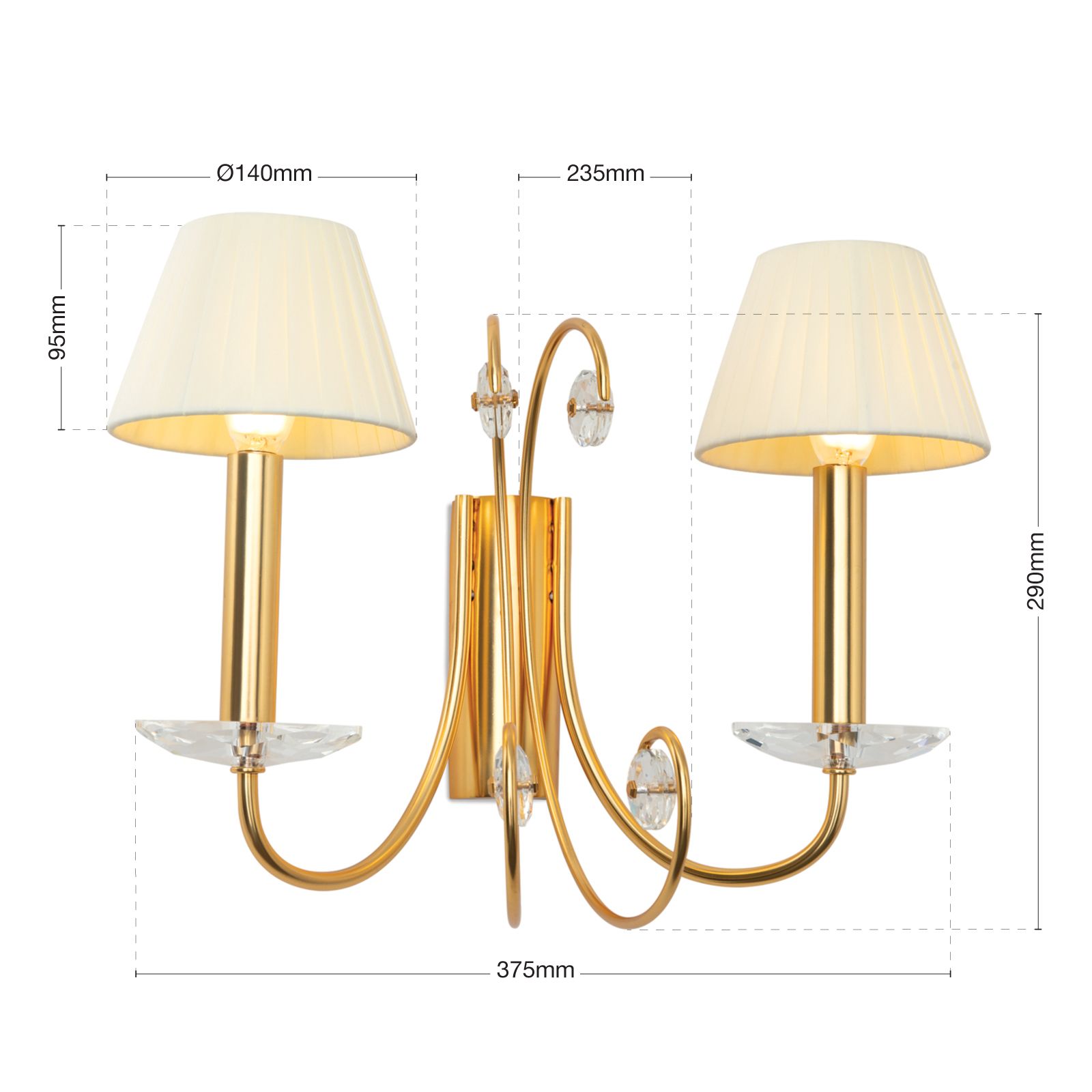 Kristallwandleuchte ARIANE, 2-flammig, Gold-matt