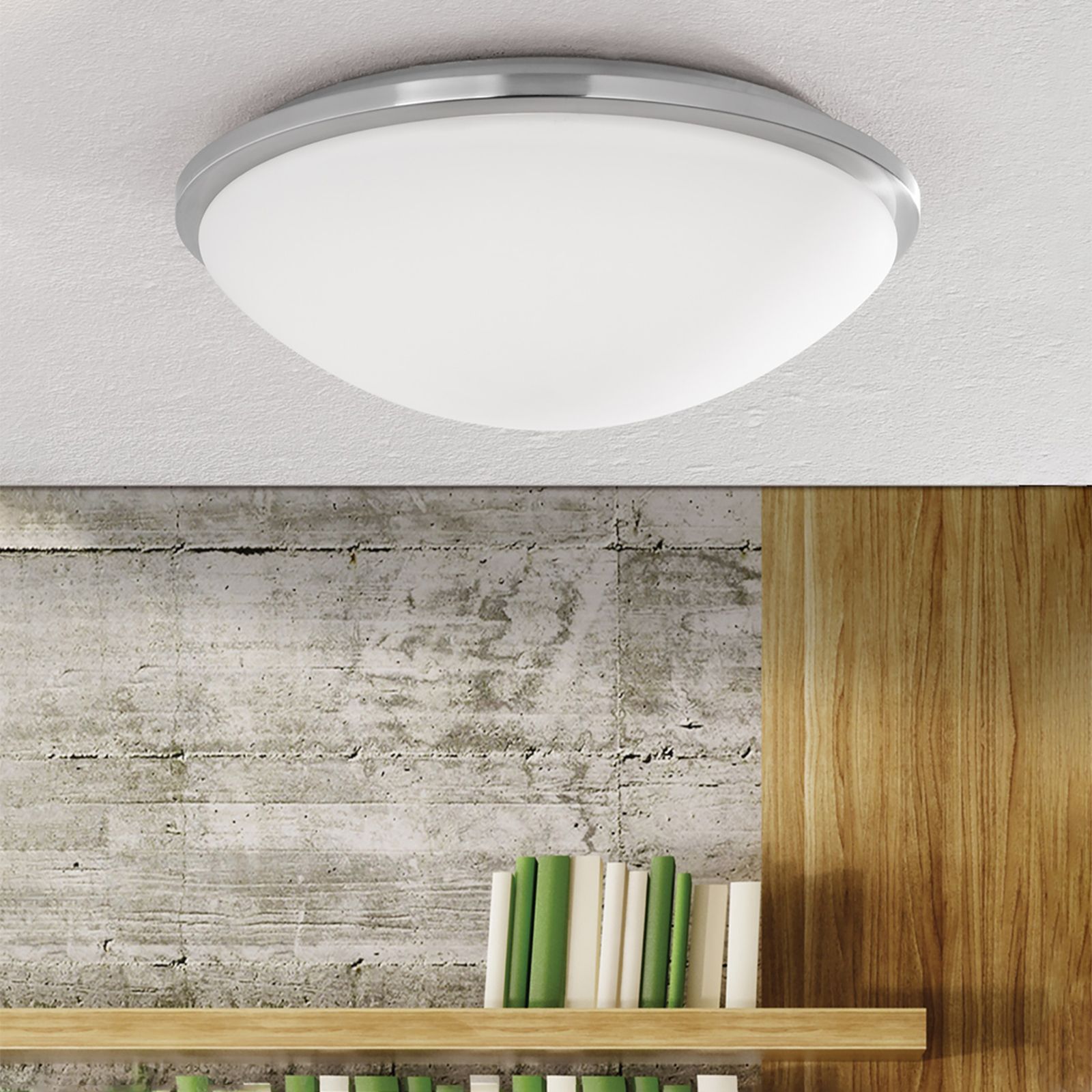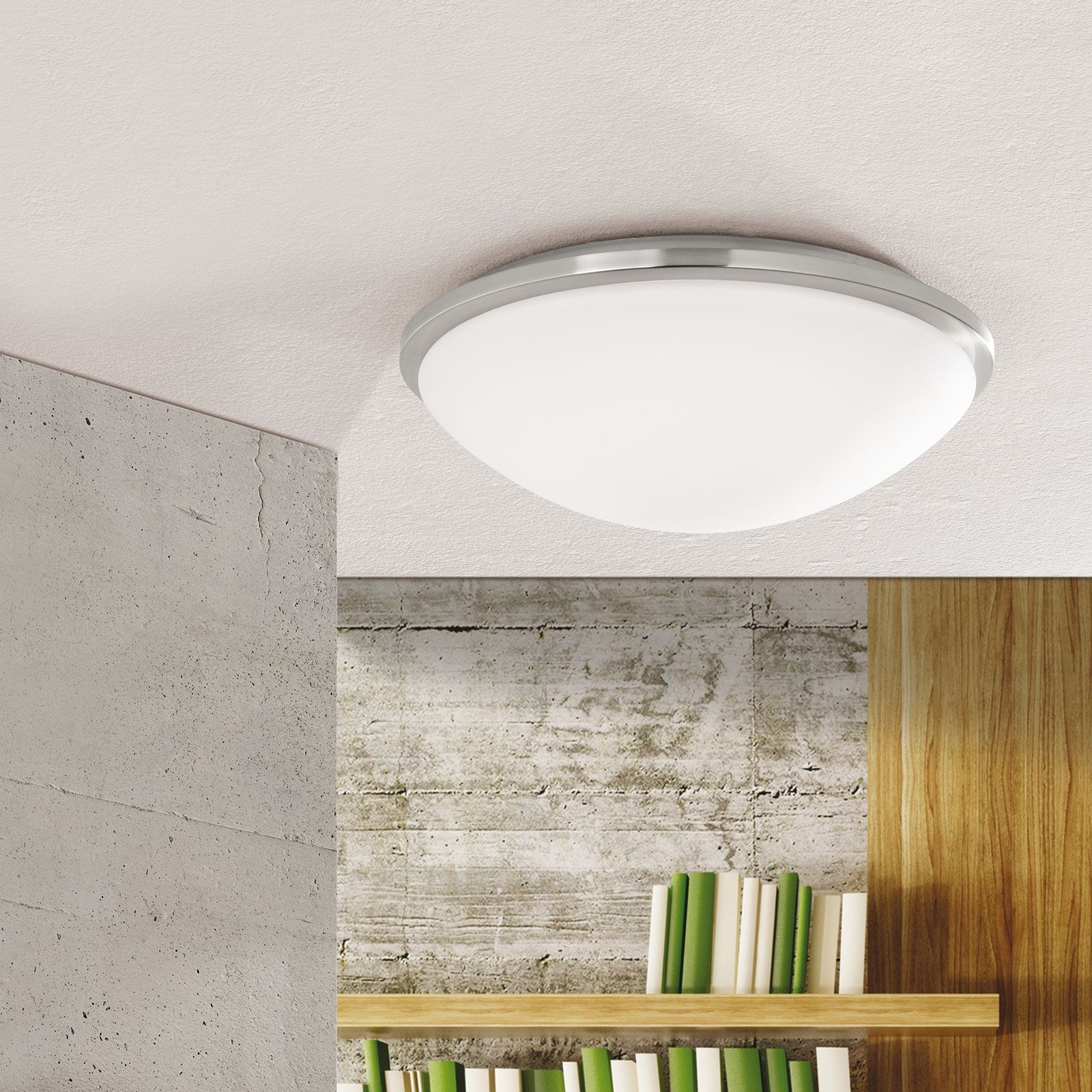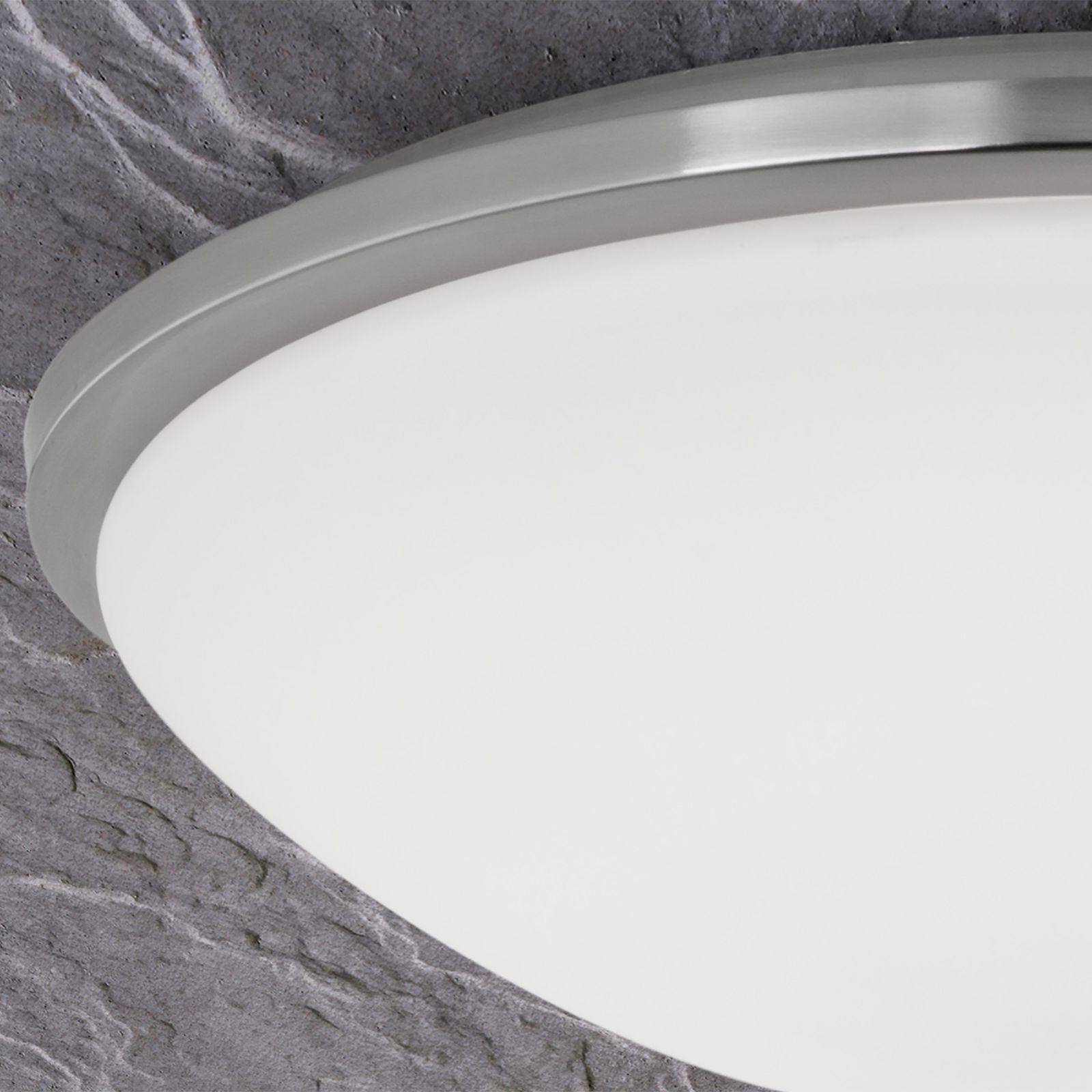 Die Deckenleuchte GLANTO lässt sich aufgrund des ausgewogenen Erscheinungsbilds leicht in Räume mit zeitgenössischem Ambiente integrieren. Der Leuchtenkörper ist gefertigt aus Metall und mit einer Oberflächenveredelung in Satin/Nickel-matt versehen. Der satinierte Glasschirm streut das Licht weich und gleichmäßig. Für die Grundbeleuchtung von Räumen mit niedriger Decke ist sie aufgrund ihrer geringen Höhe von nur 12,5 Zentimetern wie gemacht.