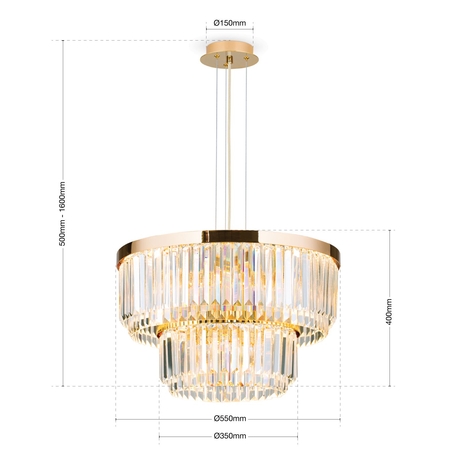 Der Kristallluster PRISM ist eine Neuinterpretation des klassischen Lusters. Zwei Ebenen von ORION Kristallglas-Prismen mit Vollschliff verleihen ihm eine schlichte Eleganz.