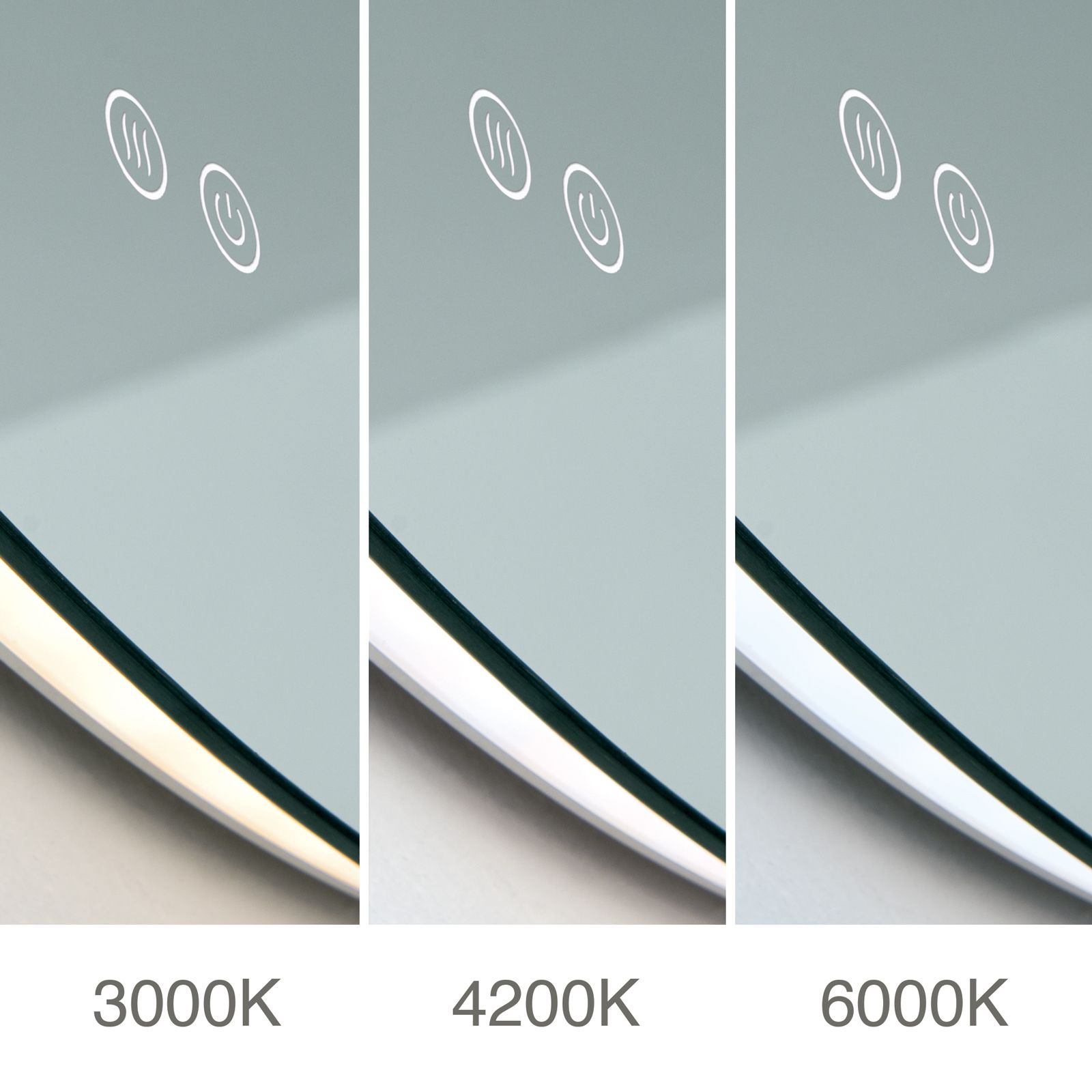 Per 3CCT-Farbsteuerung wählen Sie mit einem Fingertipp zwischen drei Lichtfarben: warmweiß (3000 K), neutralweiß (4200 K) und kaltweiß (6000 K). So schaffen Sie jederzeit die passende Lichtstimmung – morgens frisch, abends entspannend.