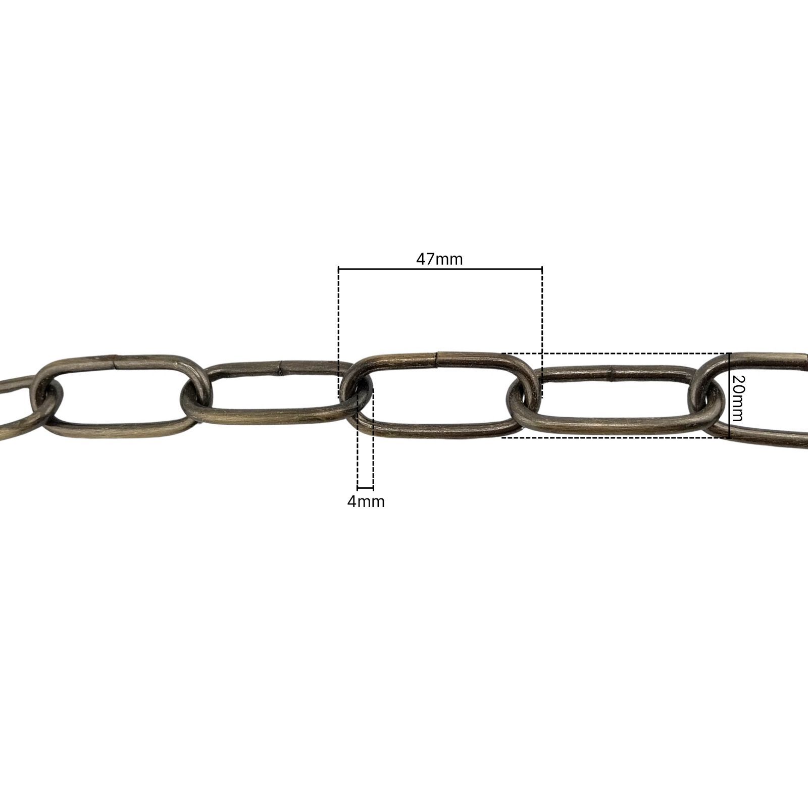 - Kettenglied: Länge 47 mm, Breite 20 mm, Höhe 4 mm