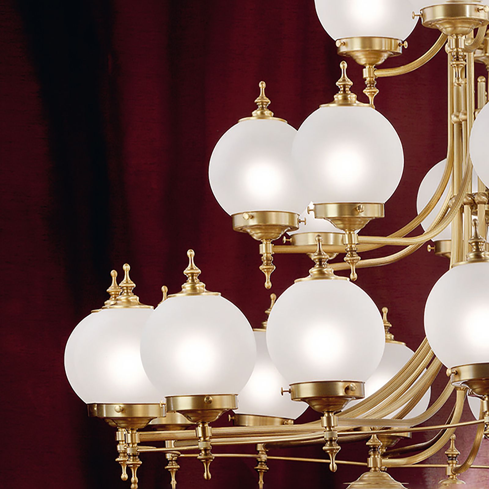 Als zentrale Leuchte in einer Eingangshalle oder einem kleinen Saal, sorgt dieser Luster für eine gleichmäßige Lichtwirkung.