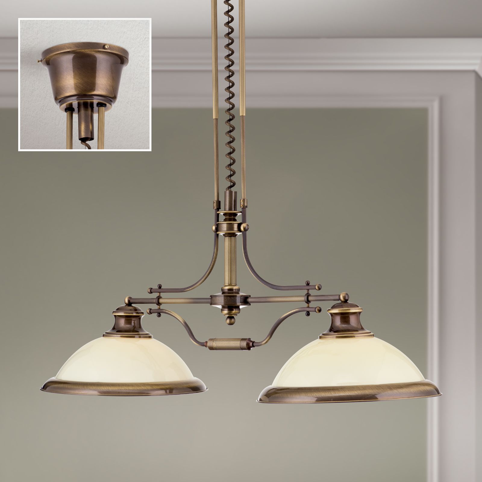 Luster AUSTRIAN OLD LAMP, 2-flammig, patina, mit champagnen Gläsern, mit Zug
