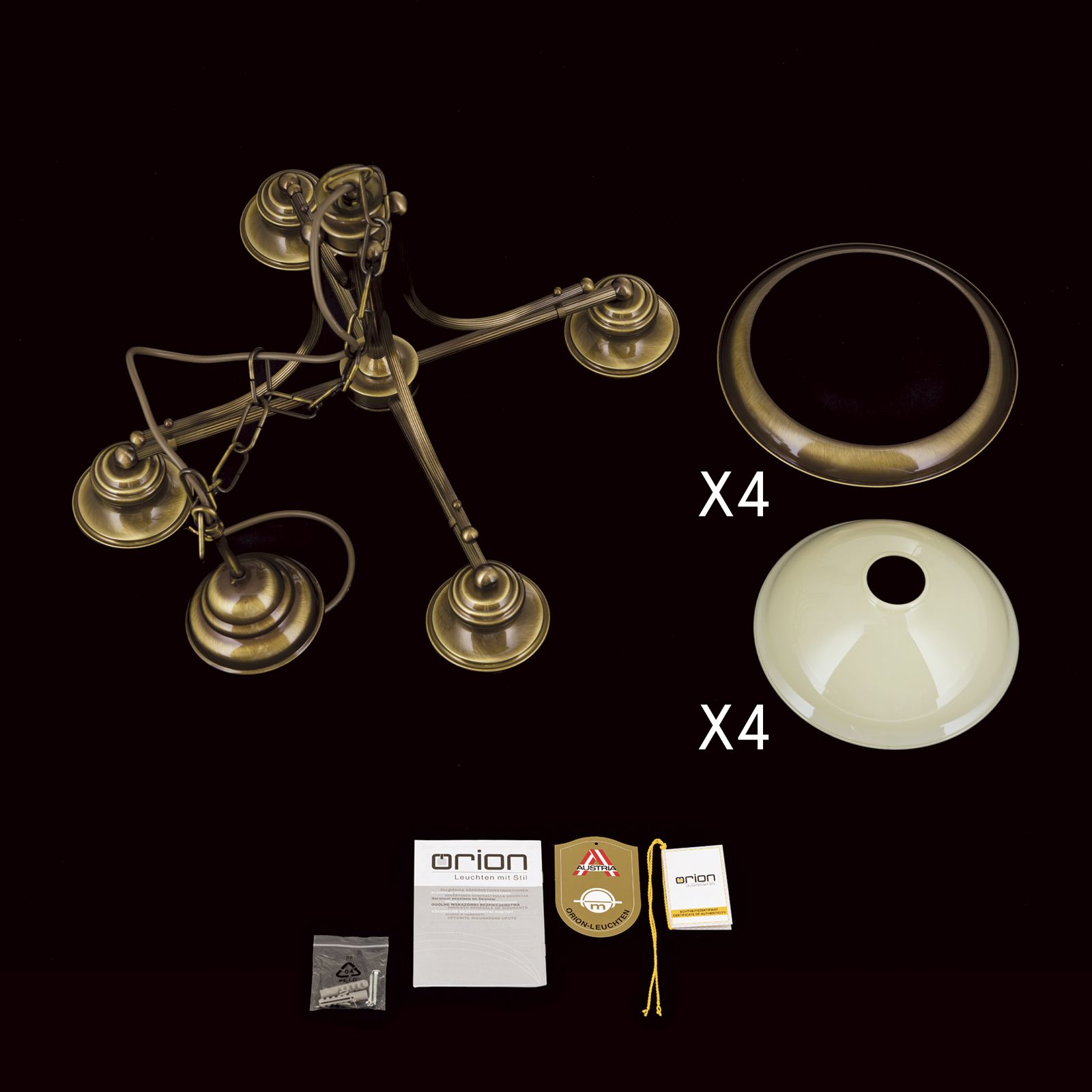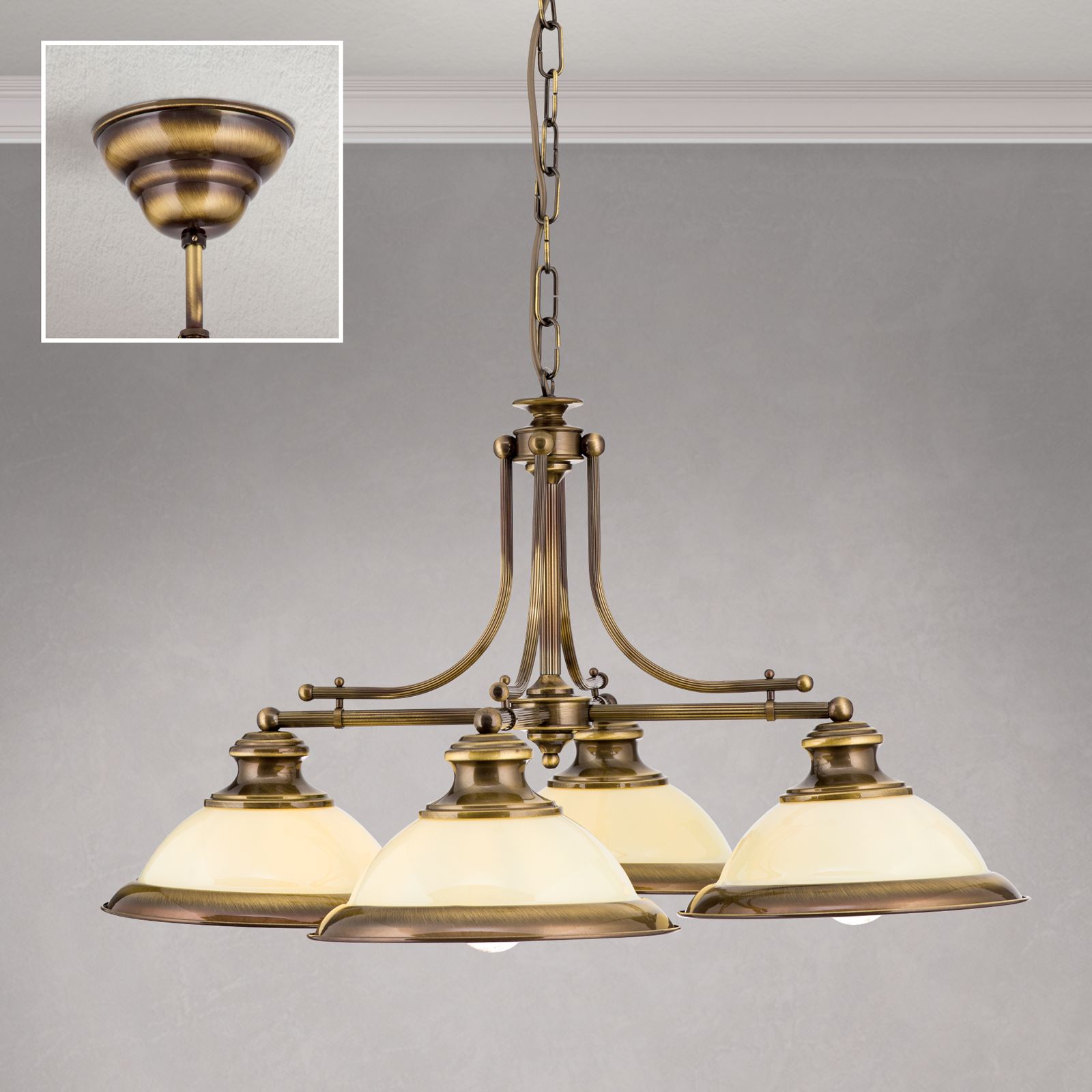 Luster AUSTRIAN OLD LAMP, 4-flammig, patina, mit champagnen Gläsern