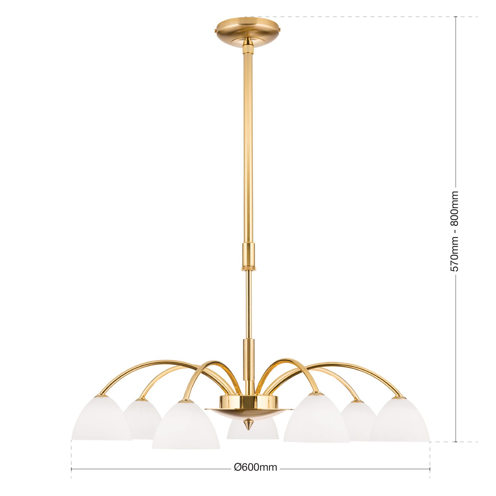 Luster OPALDESIGN, 7-flammig, Gold-matt, mit Opalgläsern