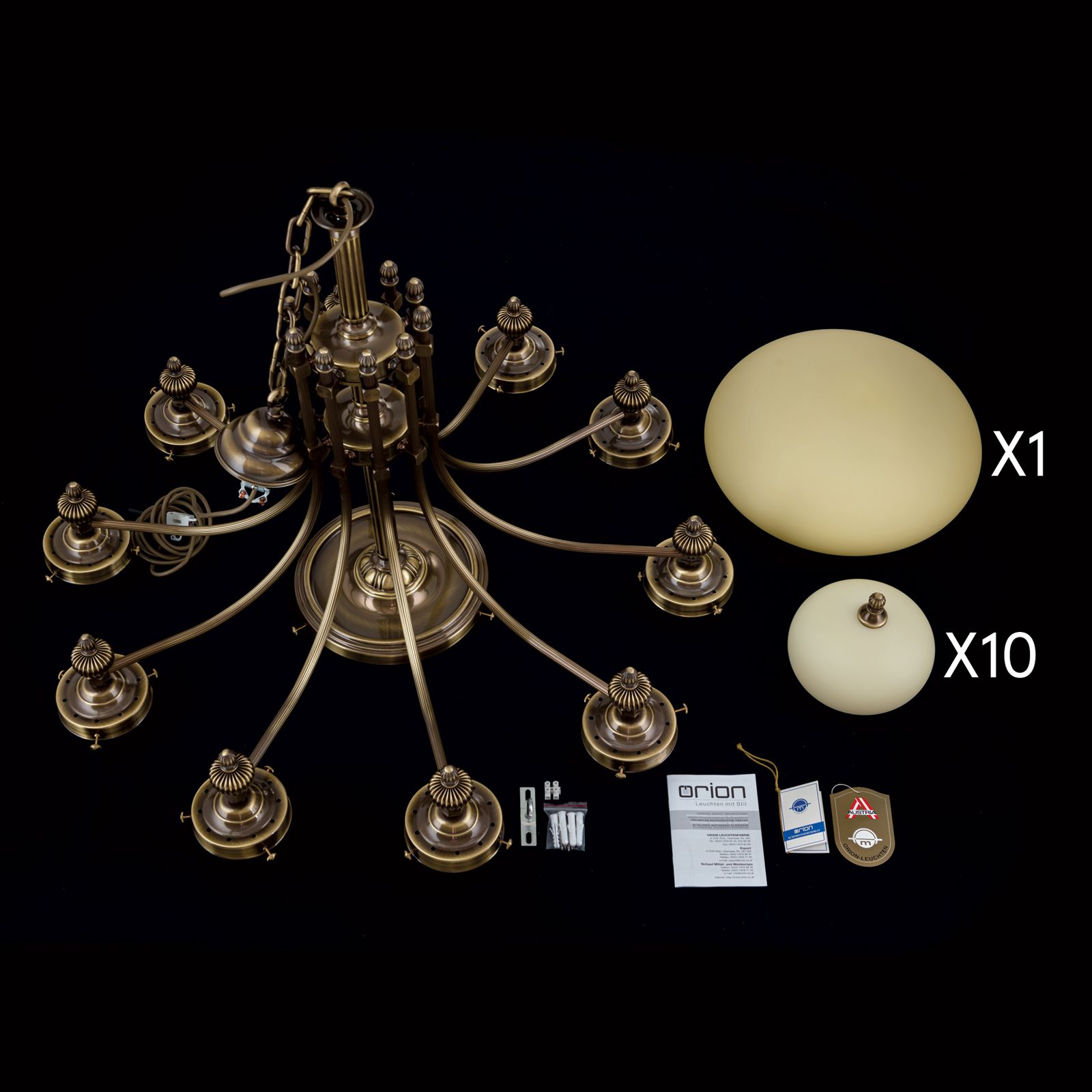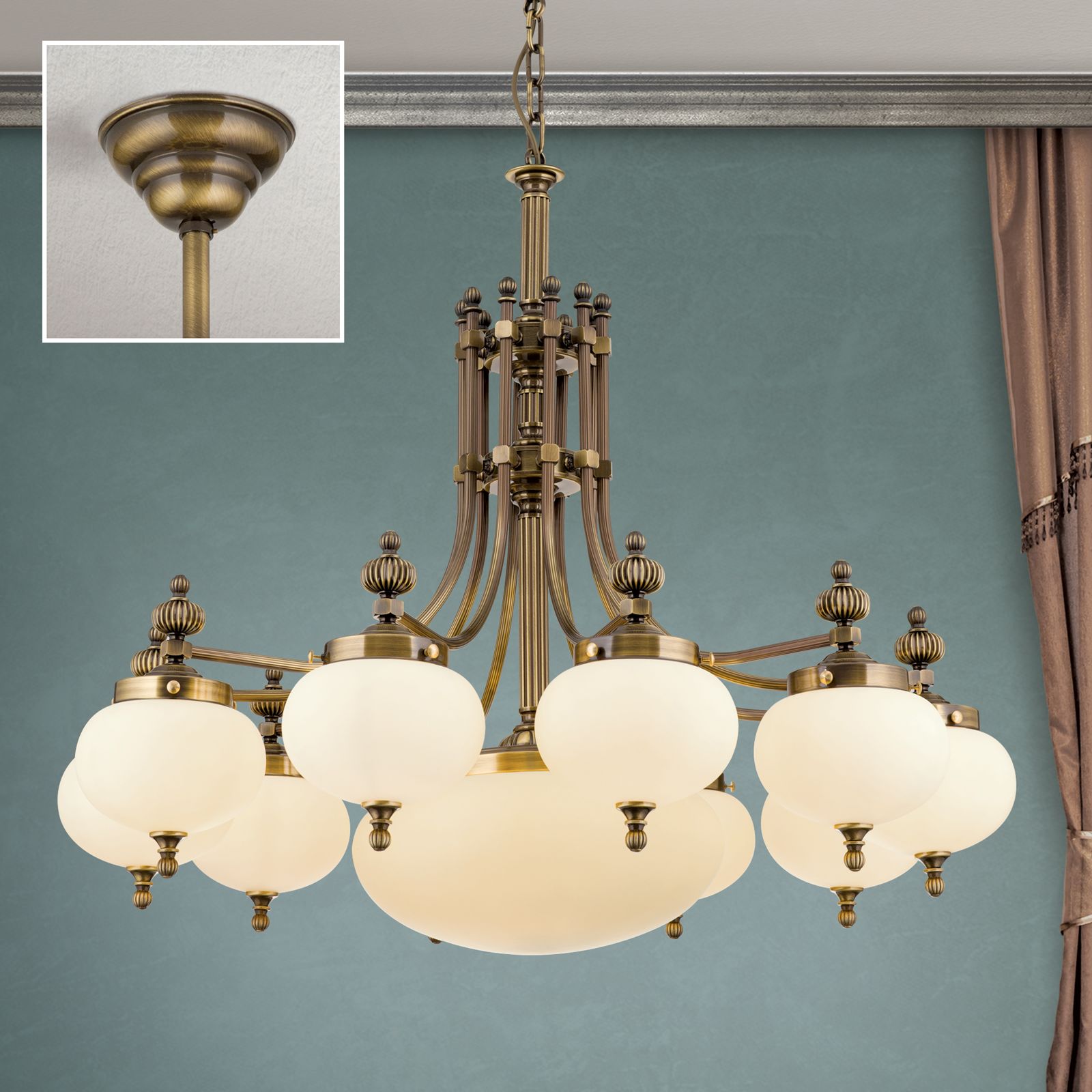 Luster WIENER NOSTALGIE, 10+1-flammig, patina, mit champagne matten Gläsern, abwärts