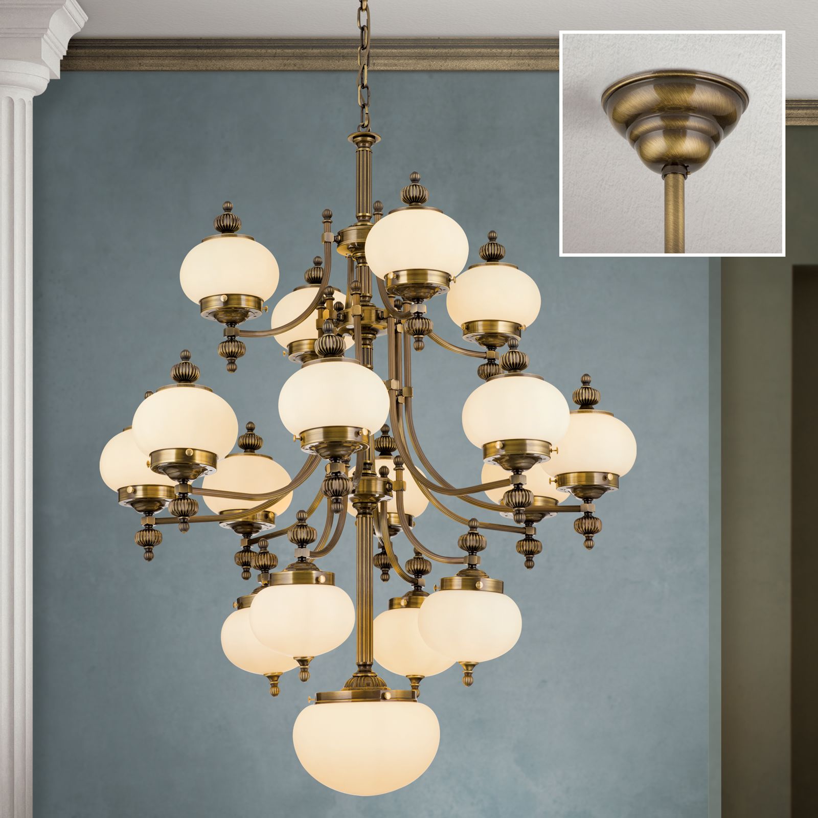 Luster WIENER NOSTALGIE, 17-flammig, patina, mit champagne matten Gläsern, aufwärts