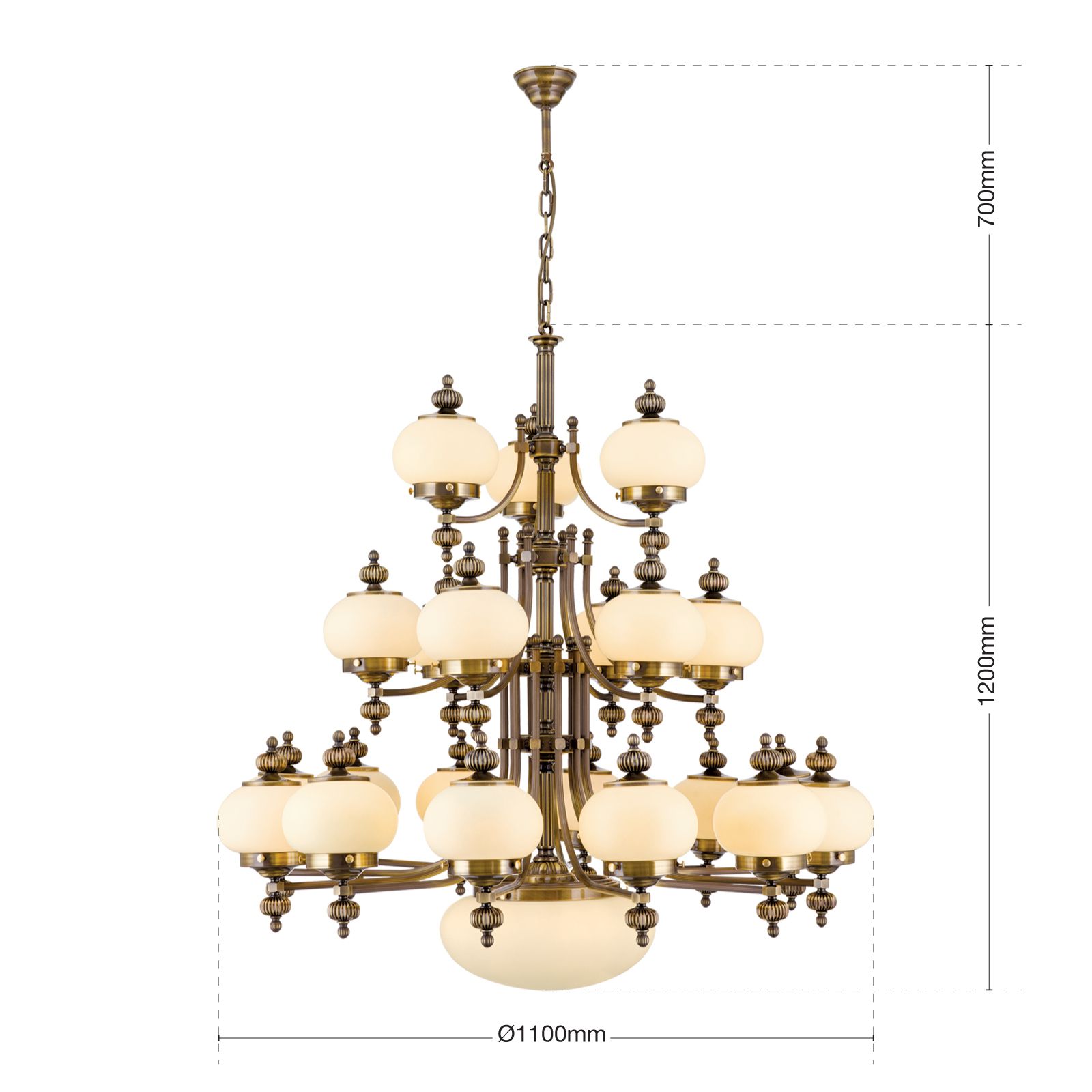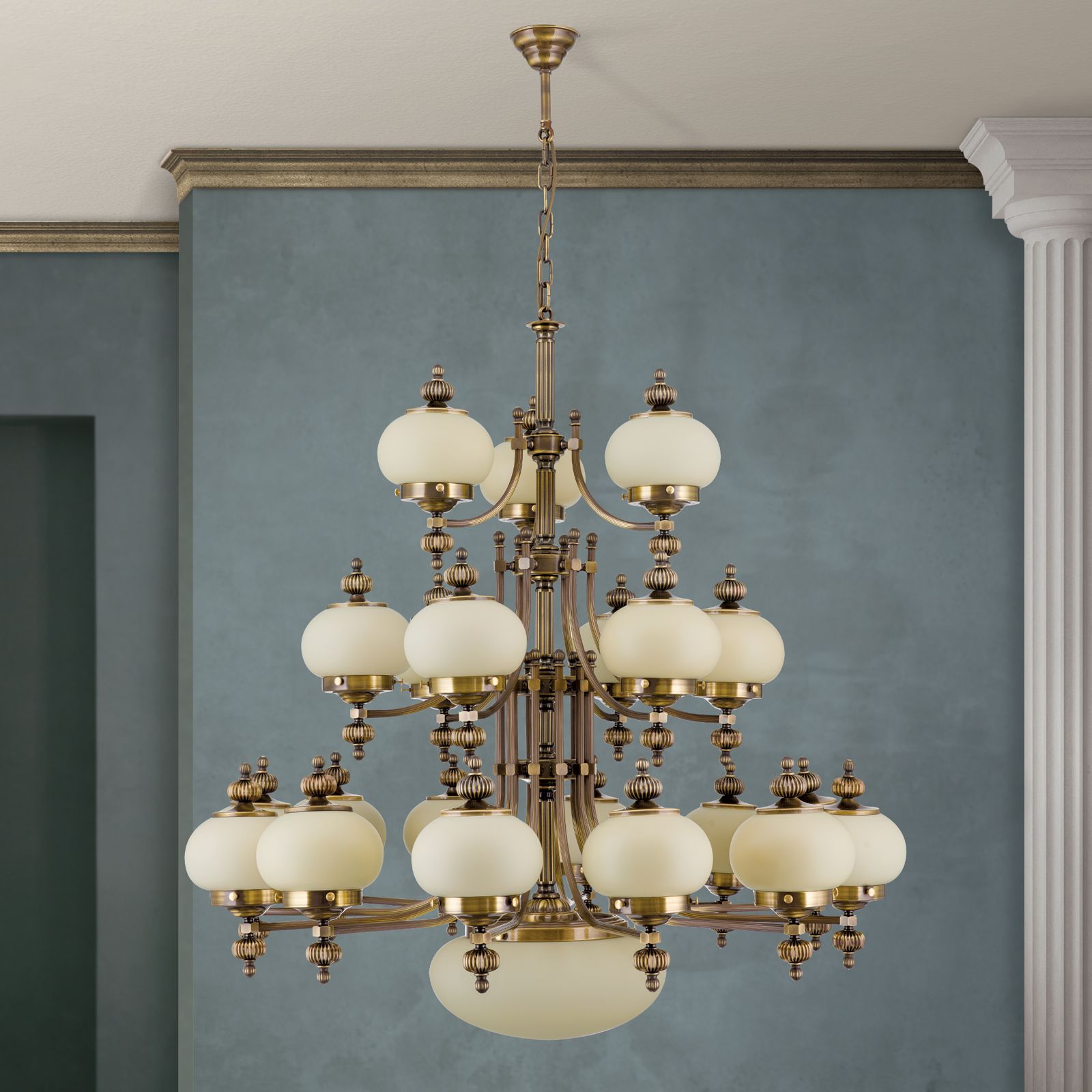 Luster WIENER NOSTALGIE, 22-flammig, Patina, mit champagne matten Gläsern, aufwärts
