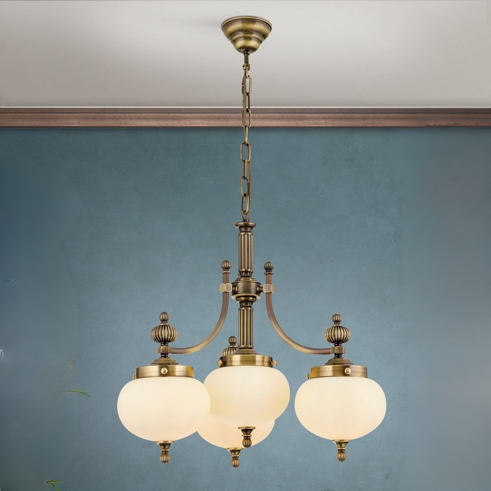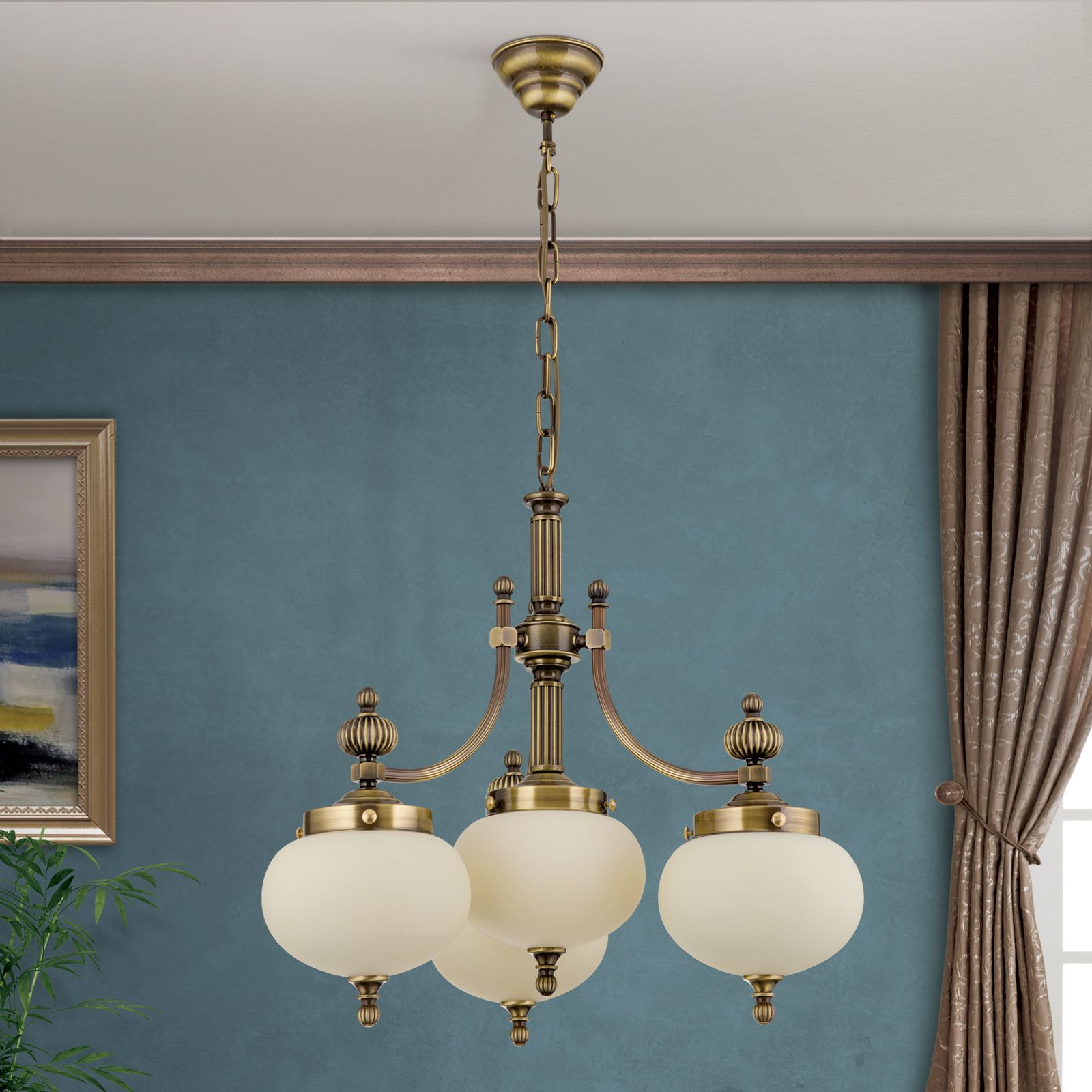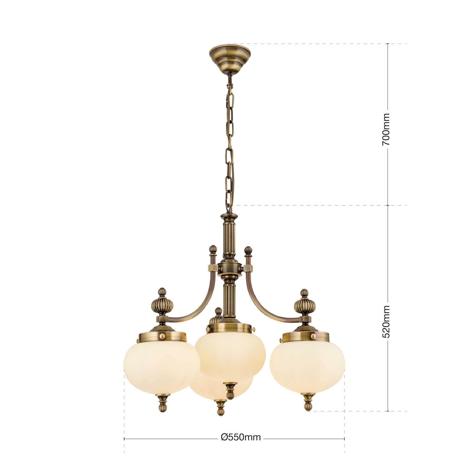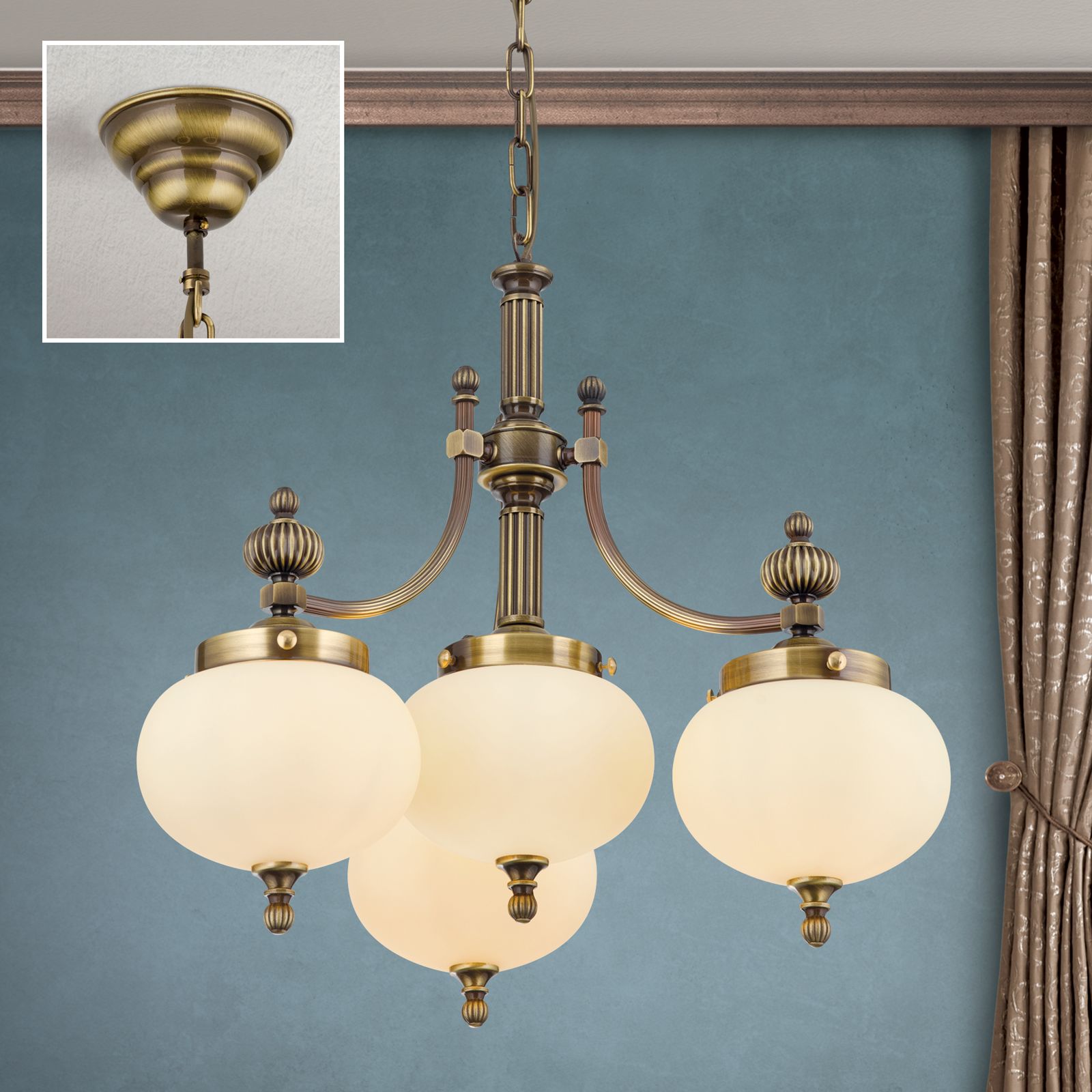 Luster WIENER NOSTALGIE, 3+1-flammig, patina, mit champagne matten Gläsern, abwärts