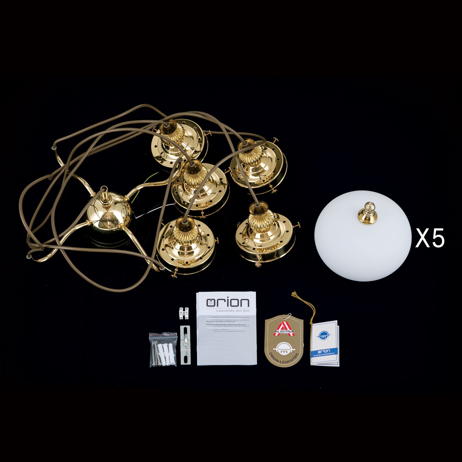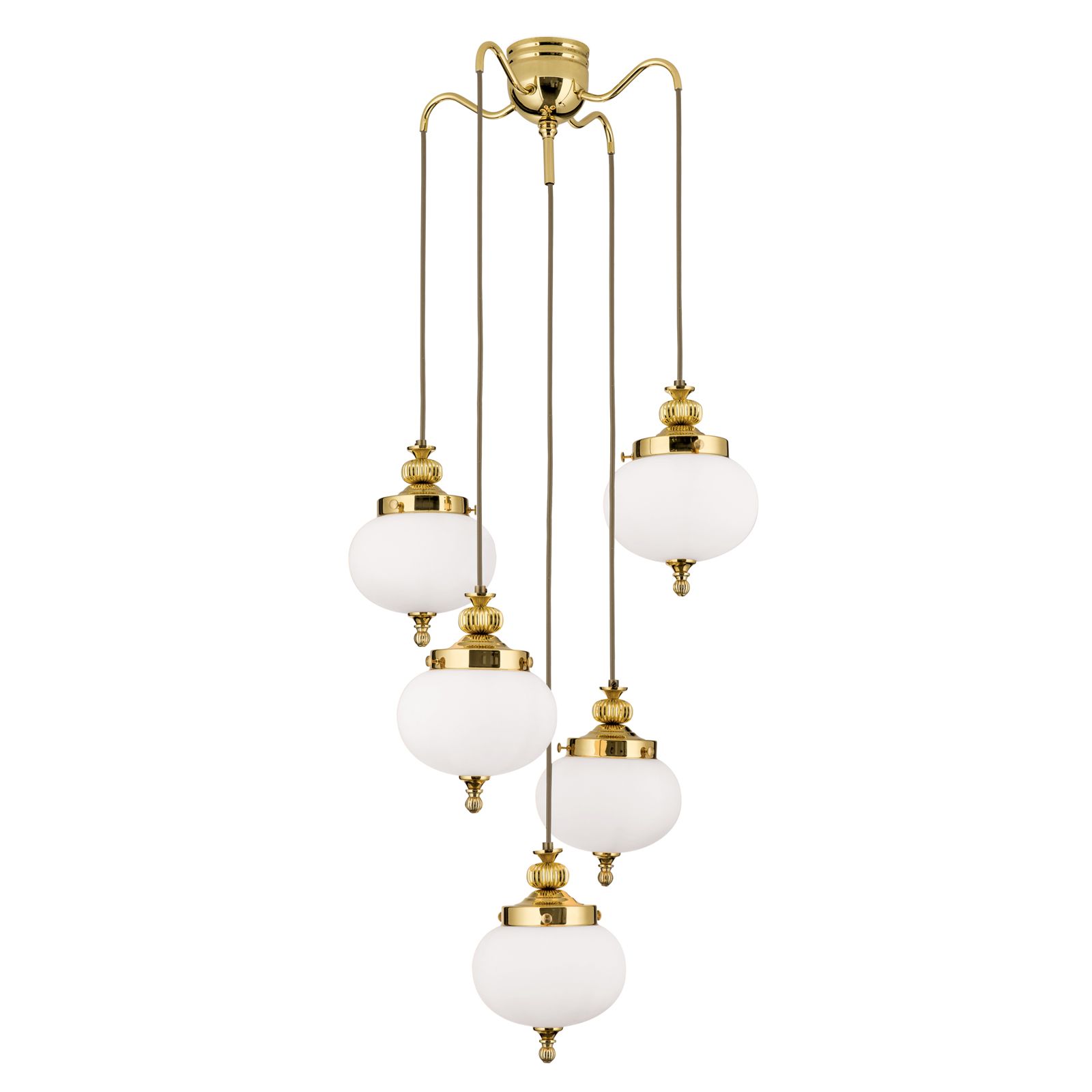 Luster WIENER NOSTALGIE, 4+1-flammig, Messing-glänzend, mit opal matten Gläsern