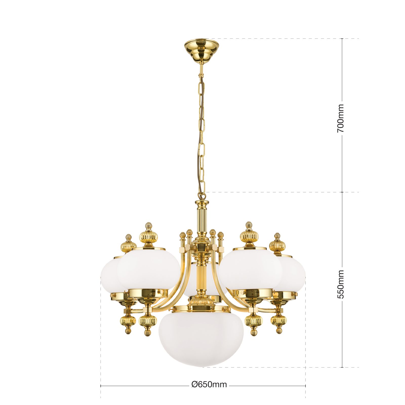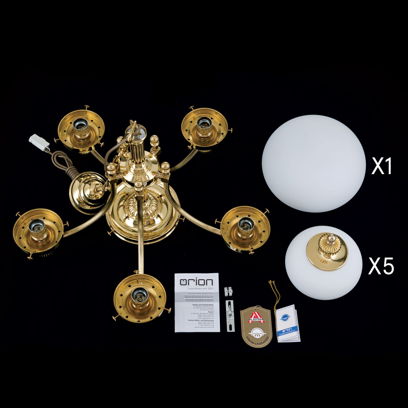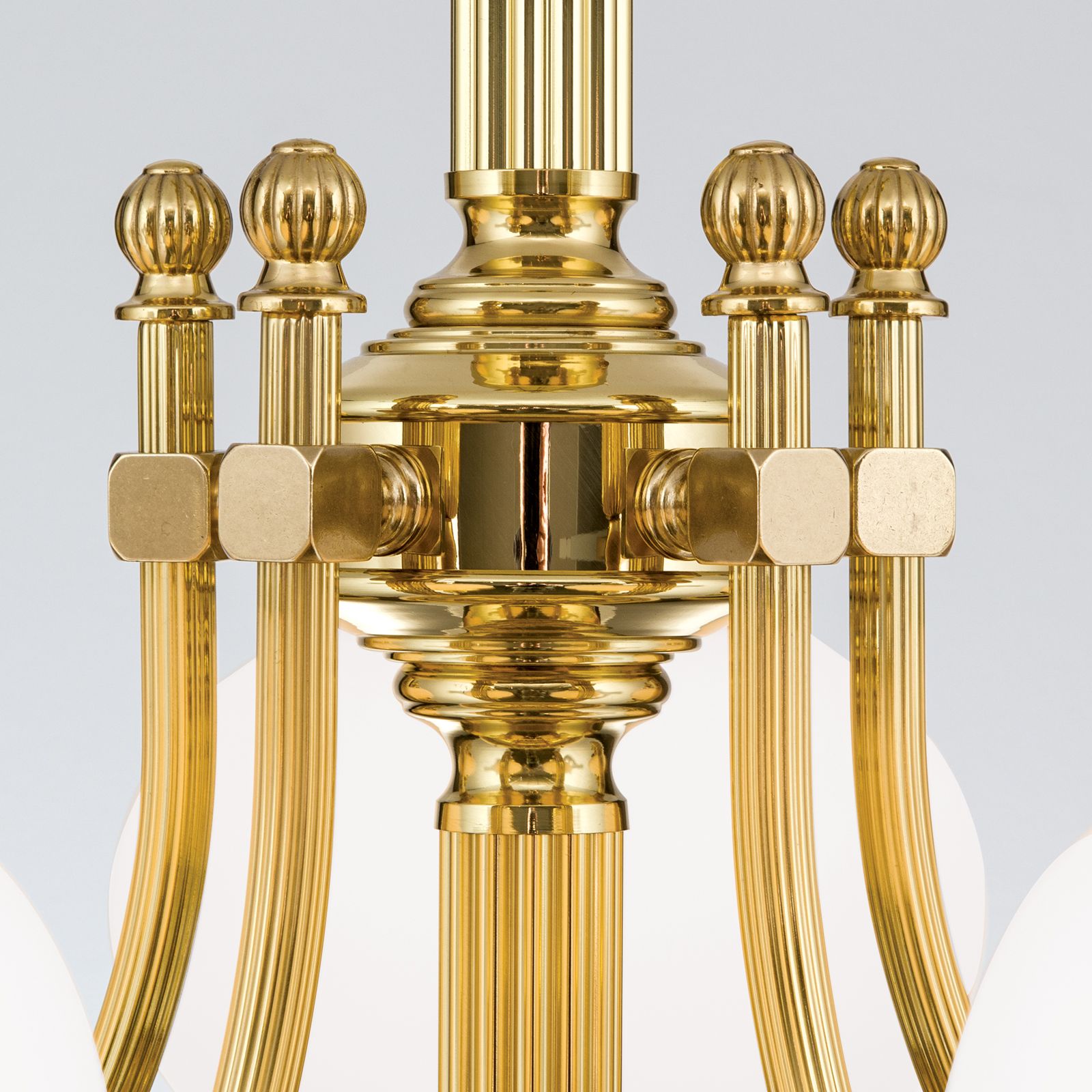 Luster WIENER NOSTALGIE, 5+1-flammig, Messing-glänzend, mit opal matten Gläsern, aufwärts