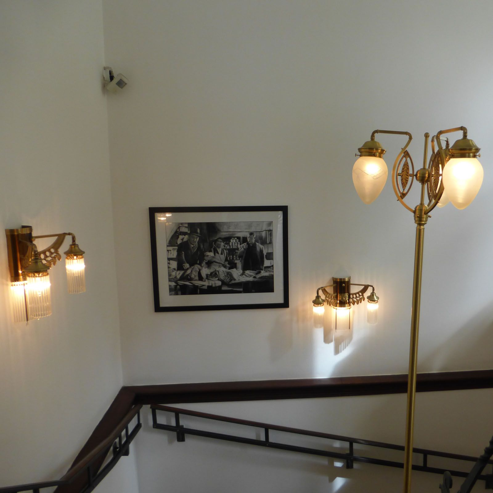 Die Jugendstil-Anmutung mit typisch ungarischen Mustern als Gravur verleiht einem Wohnzimmer, einer Lobby oder Bibliothek ein gehobenes Flair. Sowohl die Bronze-Veredelung des Messinggestells mit ihren elegant-zurückhaltenden Zierelementen als auch die goldene Ausführung mit klar geschliffenen Gläsern fügen jeder Einrichtung einen besonderen Glanz hinzu.