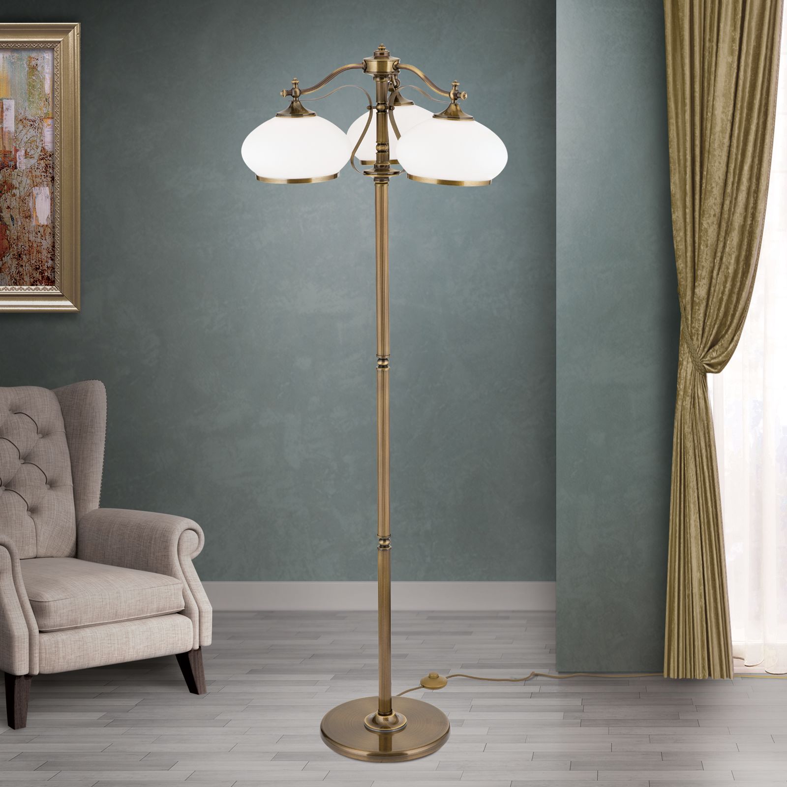 Verleihen Sie Ihrem Zuhause mit der Stehlampe EMPIRE, 3-flammig, Patina, eine einzigartige Note und genießen Sie das warme und behagliche Licht, das sie bietet. Entdecken Sie zeitlose Schönheit und Funktionalität in einem Produkt – die EMPIRE Stehlampe ist eine Bereicherung für jedes Interieur.