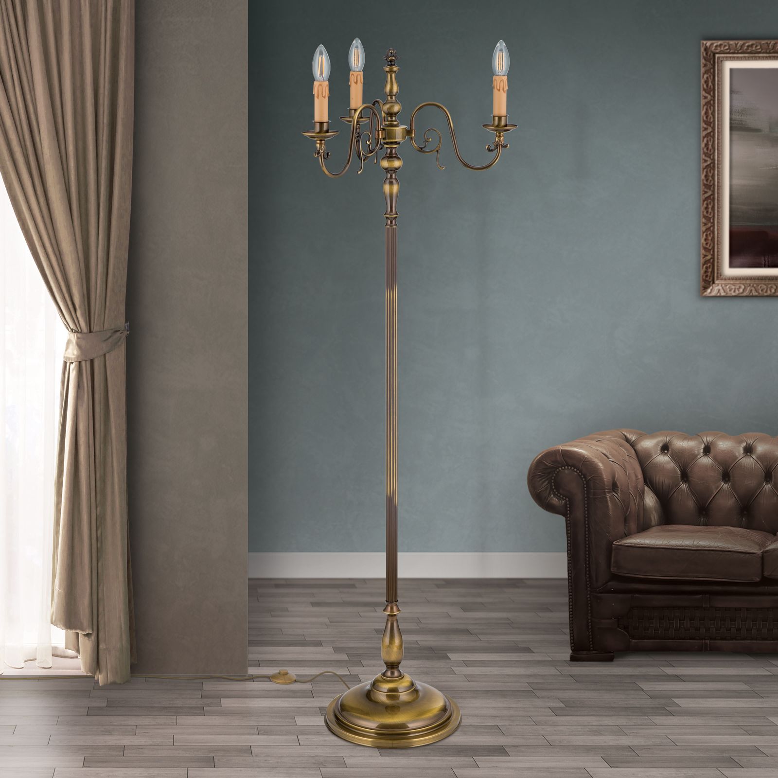 Stehlampe FLÄMISCH, 3-flammig, Patina