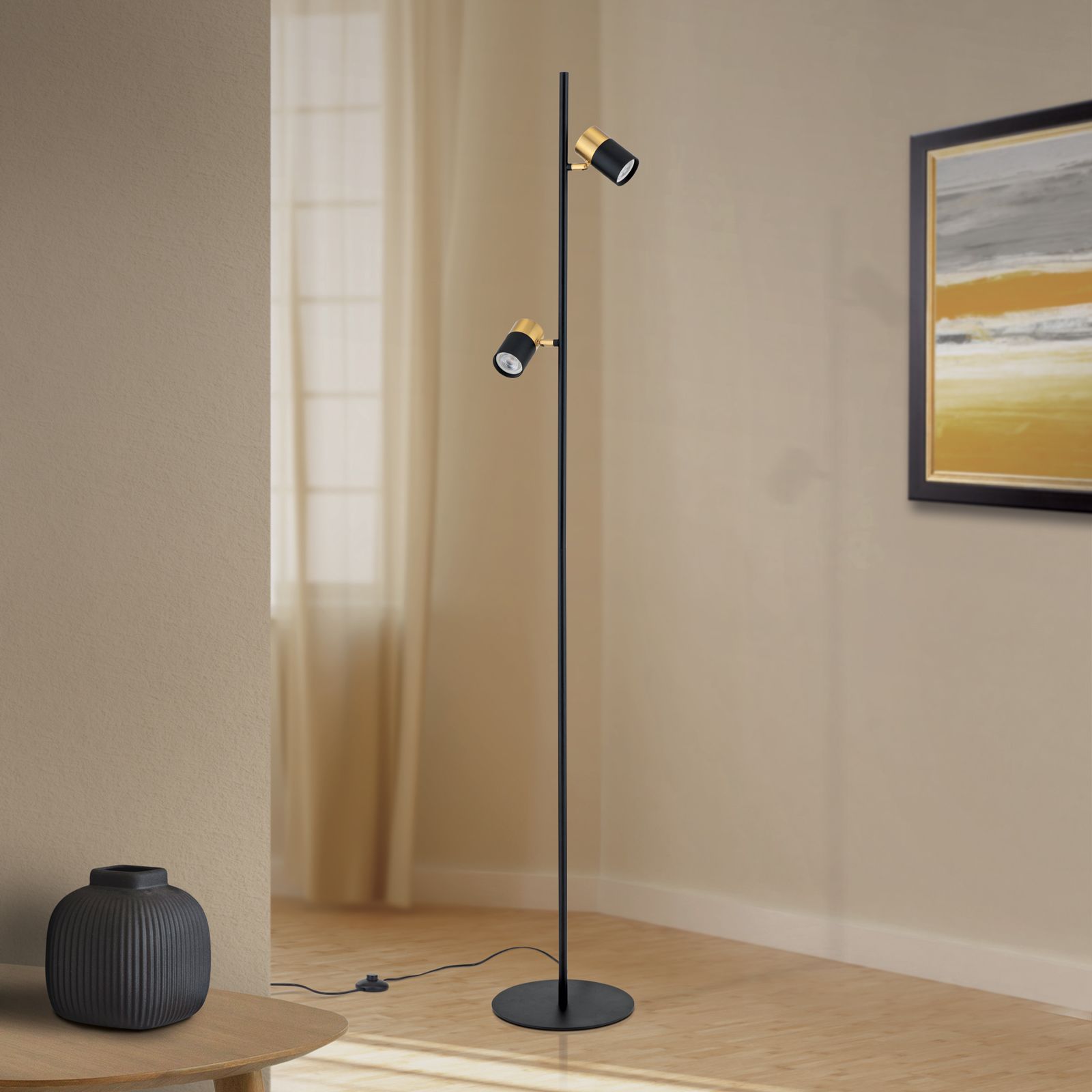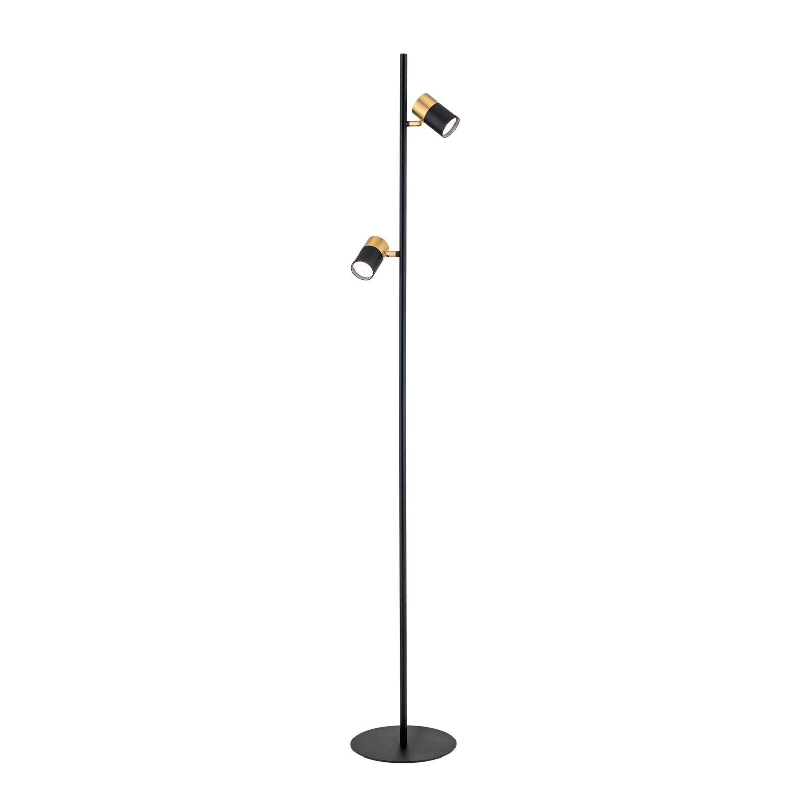 Stehlampe KEVIN, schwarz-gold, zwei schwenkbare Leuchtenköpfe