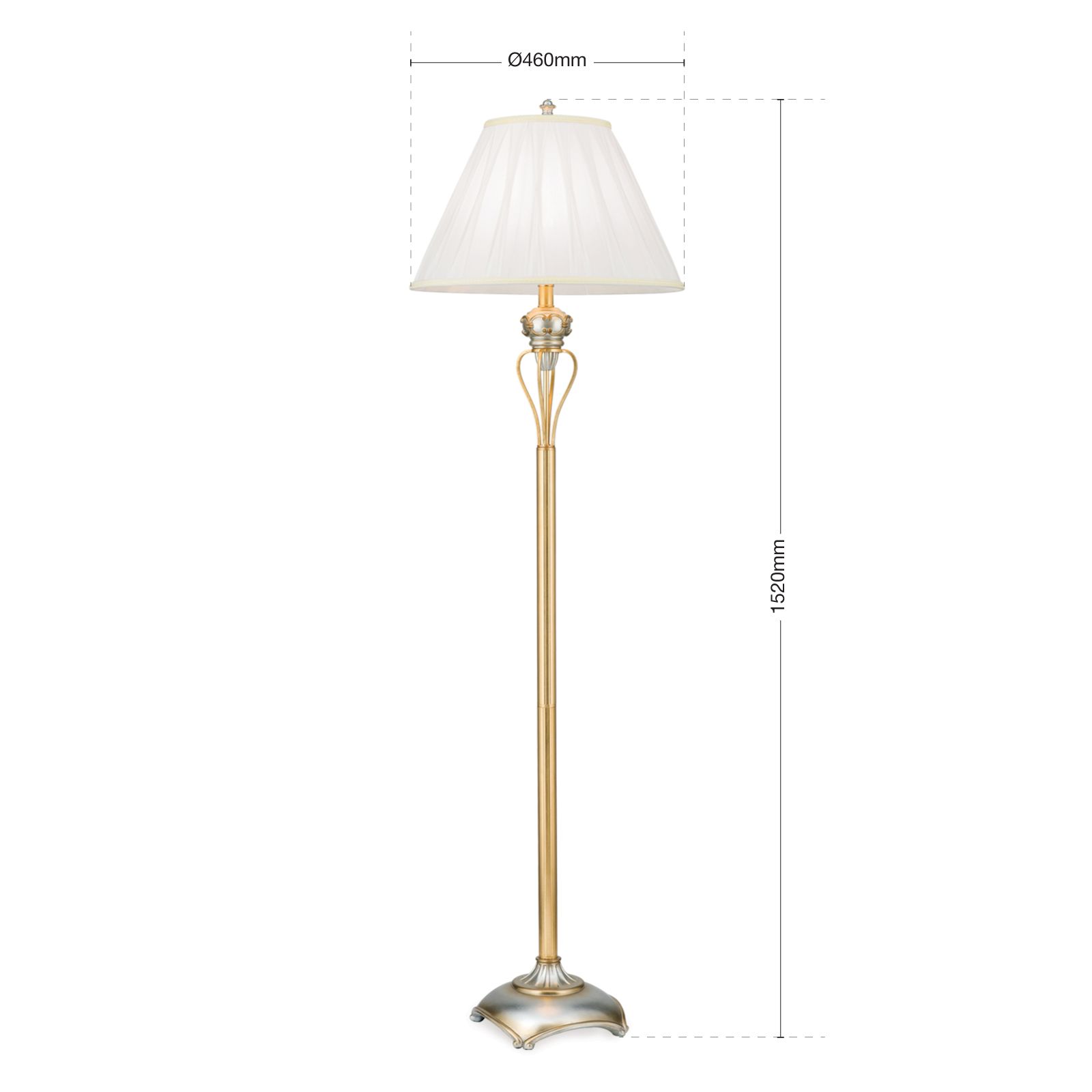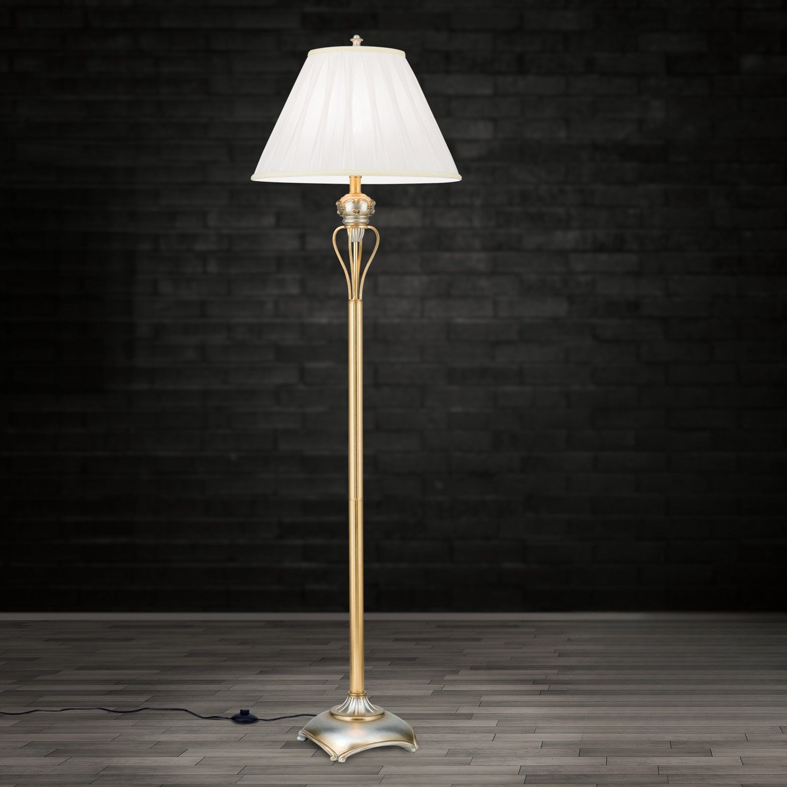 Wer ein wenig imperialen Glanz in sein Heim zaubern will, kommt um die TIZIA-Stehlampe nicht herum. Sie ist gewissermaßen eine von Lampenkopf bis -fuß durchkomponierte Zelebrierung des Edlen. Der Sockel steht auf vier verzierten Füßen und strebt in reicher Ornamentik empor. Der Schirm ist in fein gebündeltem Plissée ausgeführt und wird durch Blütenkelche gekrönt. Die hochwertige Antik-Gold Ausführung rundet das noble Erscheinungsbild ab. Jeder Raum mit passendem Mobiliar wird durch dieses Leuchtenkleinod geadelt und mit bis zu 60 Watt zum Erstrahlen gebracht. Bei aller Opulenz kann die Leuchte doch durch den Einsatz einer energiesparenden Lampe klima- und umweltfreundlich betrieben werden.