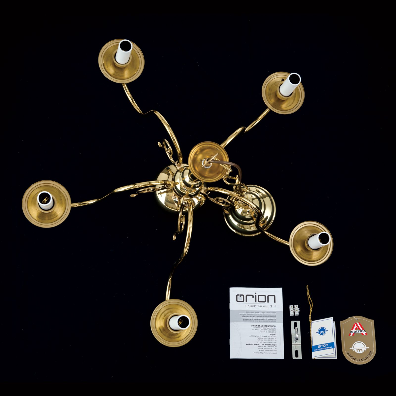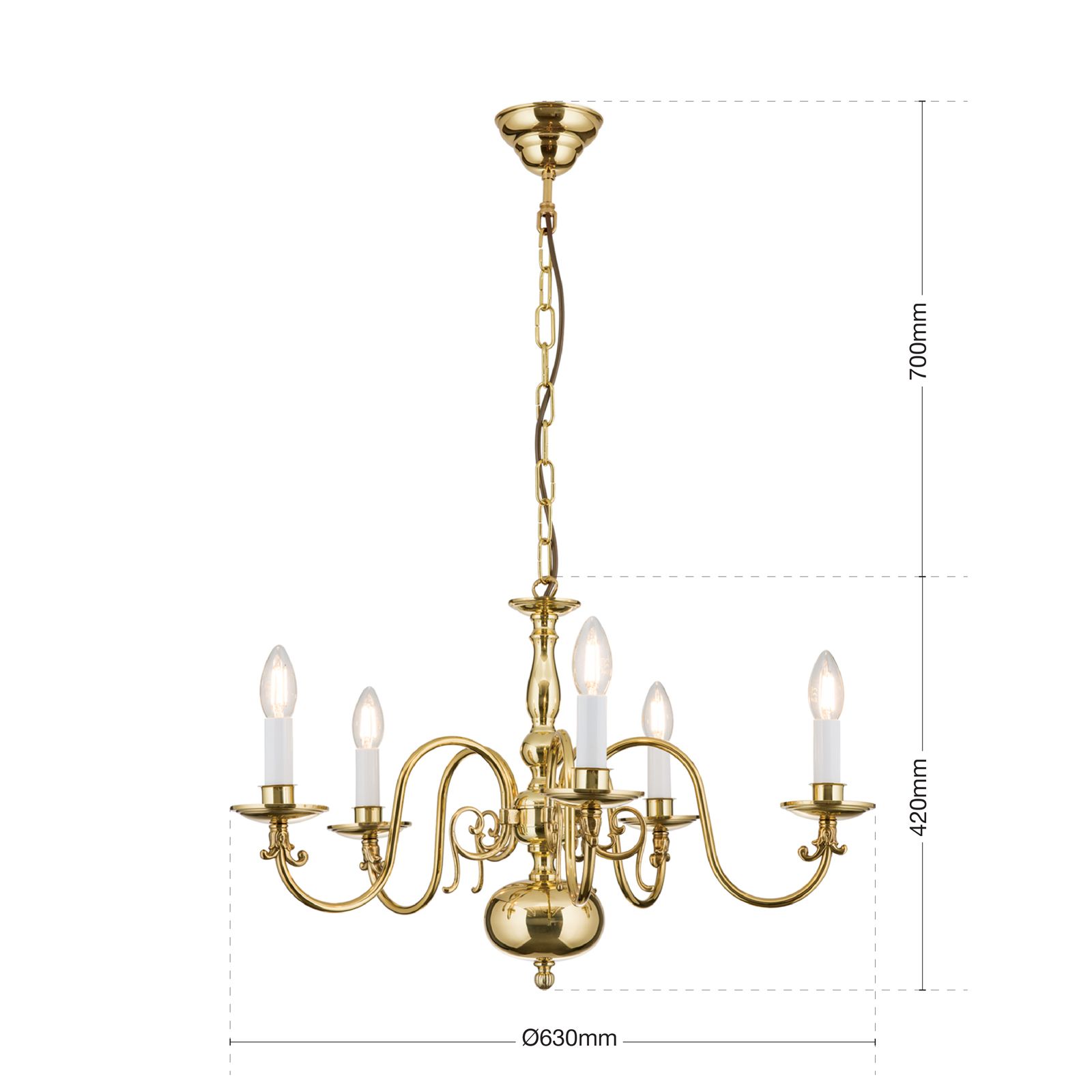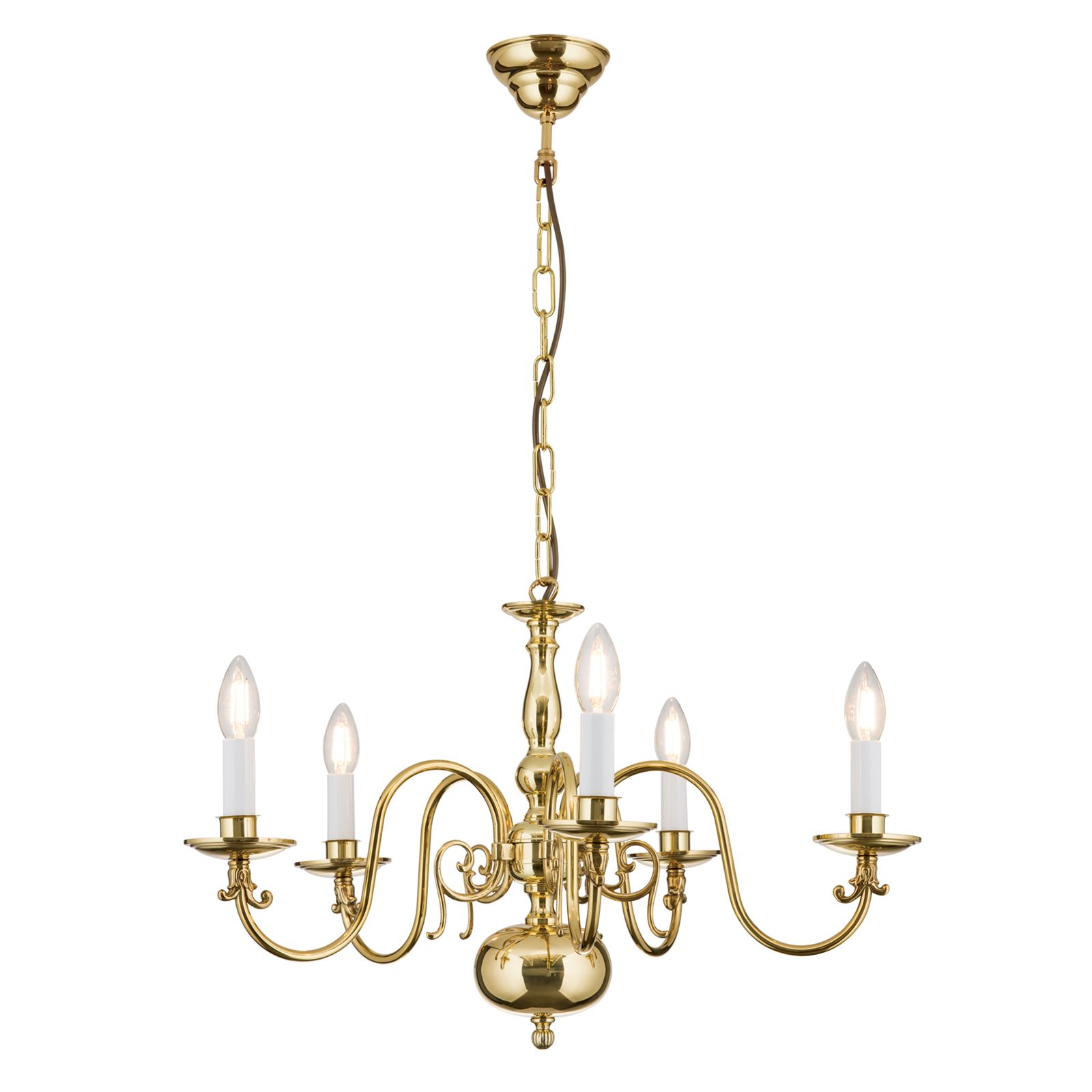 Stilluster FLÄMISCH, 5-flammig, Messing-glänzend