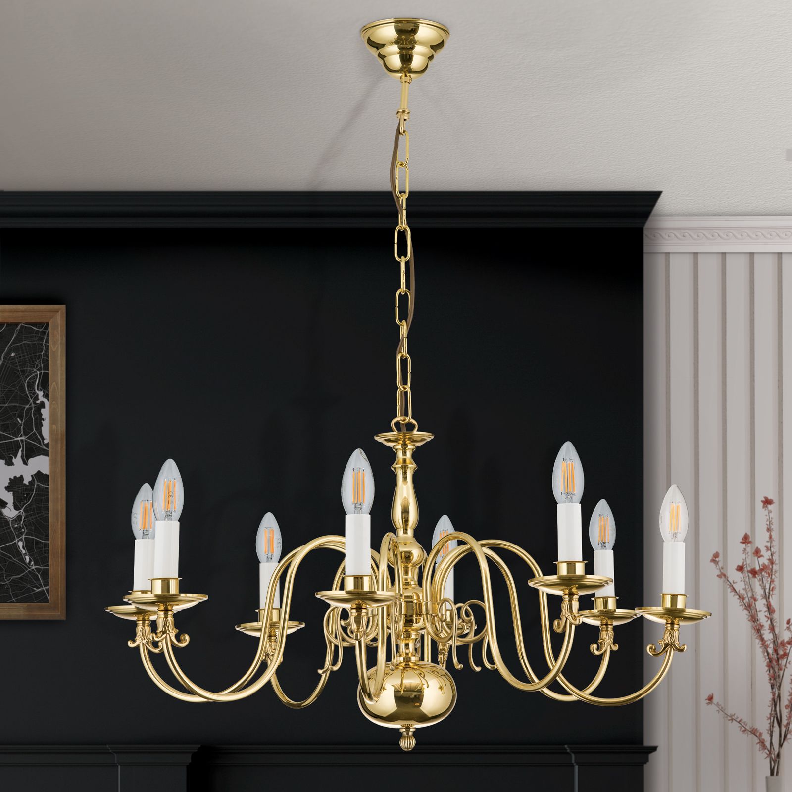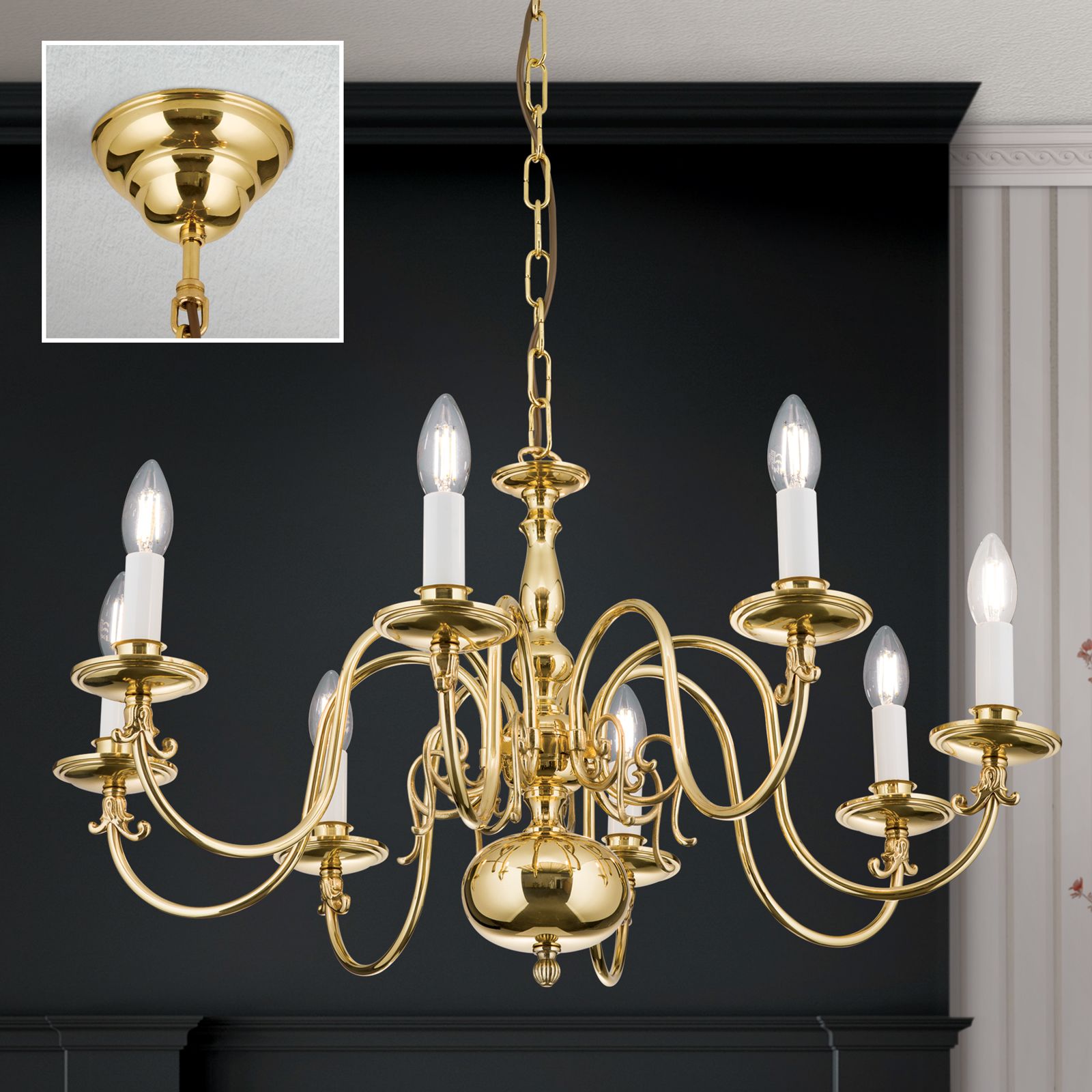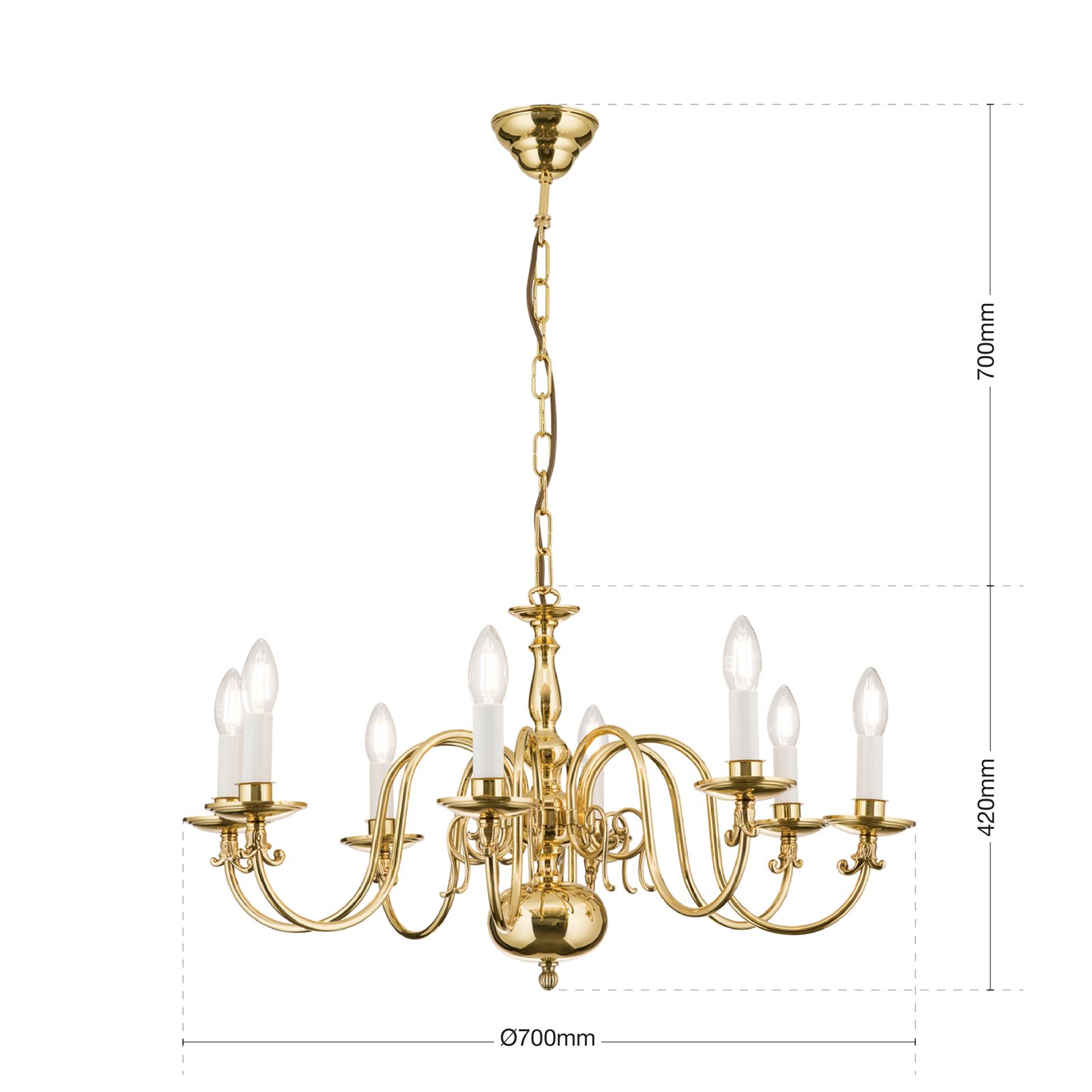 Stilluster FLÄMISCH, 8-flammig, Messing-glänzend