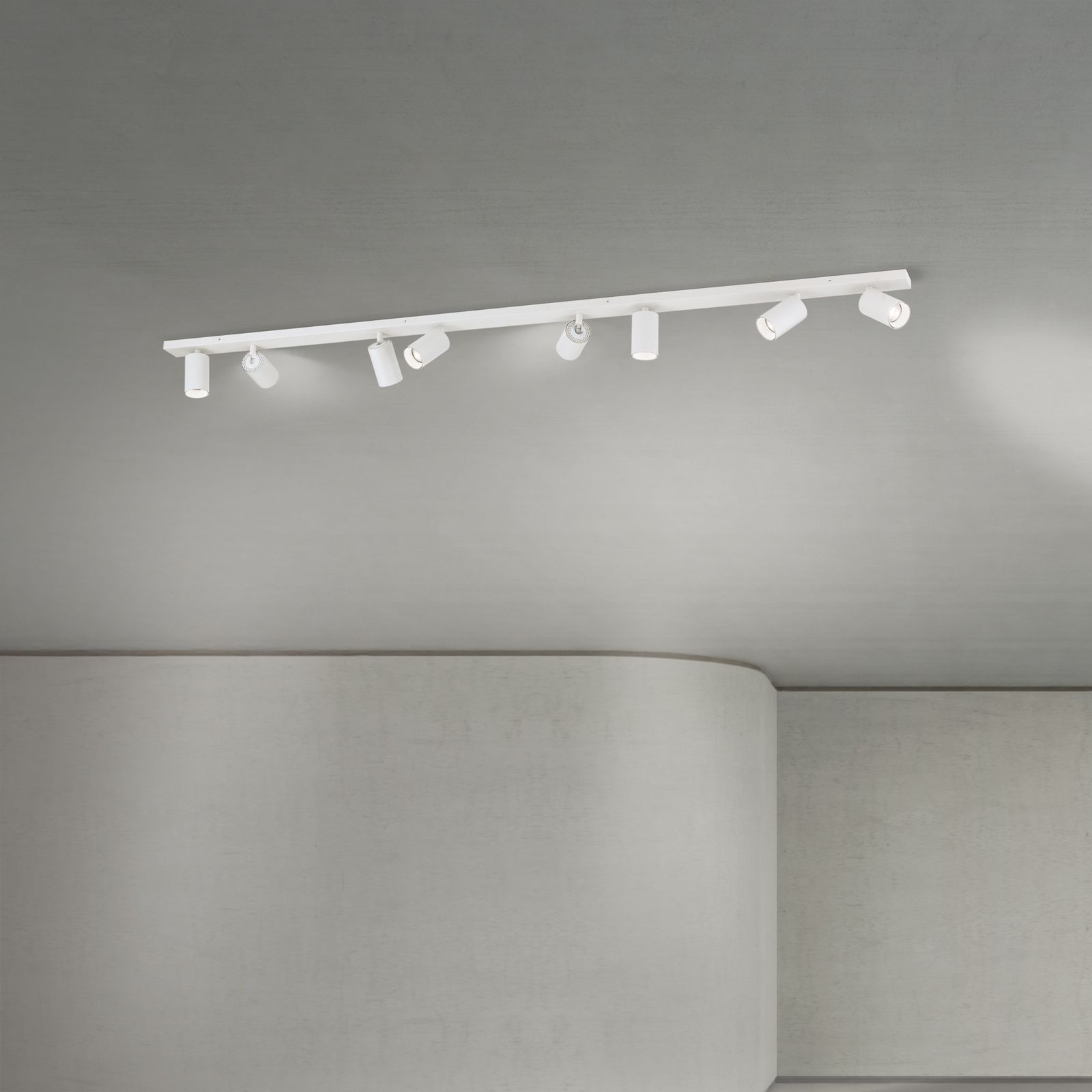 Mit einer Länge von 175 cm eignet sich SEAN ideal für größere Räume und sorgt für eine gleichmäßige, flexible Ausleuchtung – ob im Wohn- oder Esszimmer, in der Küche, im Schlafzimmer, Arbeitszimmer/Büro oder im Flur. Die acht GU10-Fassungen ermöglichen eine individuelle Lichtgestaltung. Dank der schwenkbaren Strahlerköpfe lässt sich das Licht gezielt ausrichten – für perfekte Lichtverhältnisse in jeder Situation.