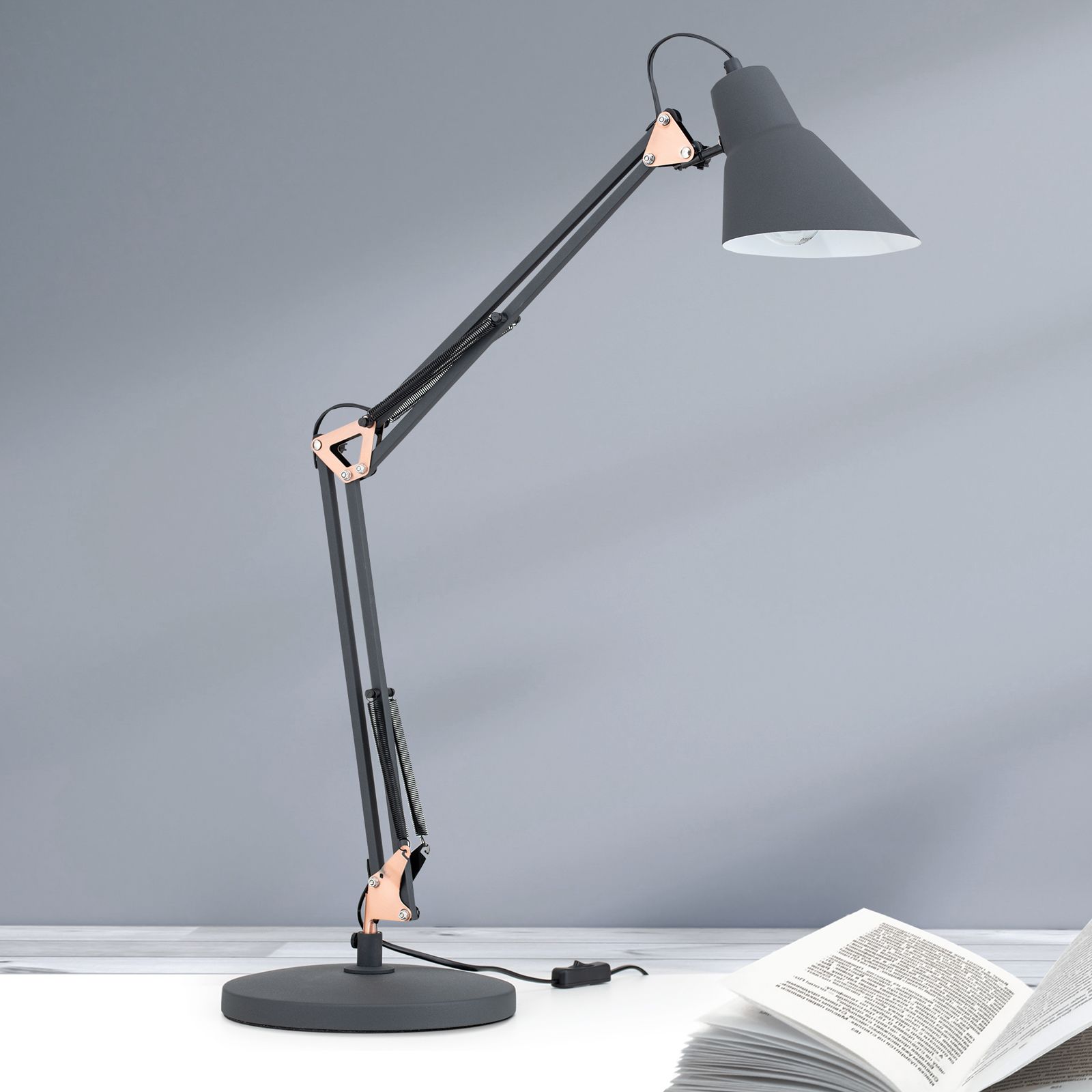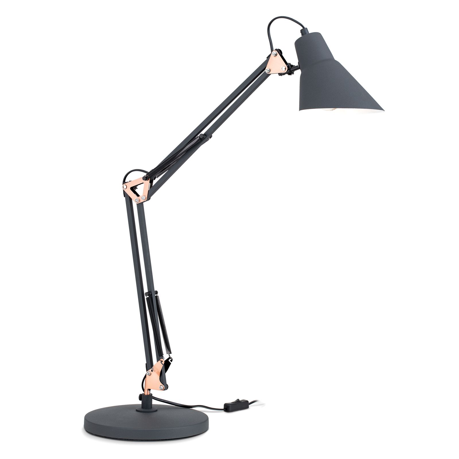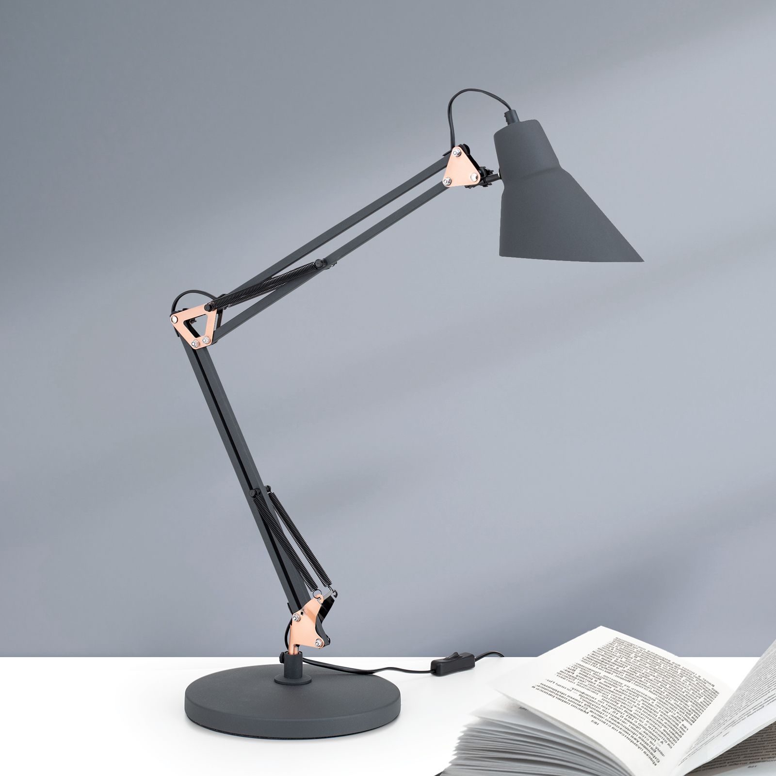 Die mattschwarze Pulverbeschichtung in Kombination mit den kupferfarbenen Gelenken verleiht ihr einen gegenwärtigen, trendigen Look. Auf dem Arbeitstisch macht sie eine tolle Figur, wo ihr schwenkbarer Lampenschirm mithilfe der Zugfedern und Gelenke einfach in die gewünschte Positions gebracht werden kann. Neben dem Arbeitszimmer kann sie auch als Beleuchtung in der gemütlichen Leseecke eingesetzt werden.