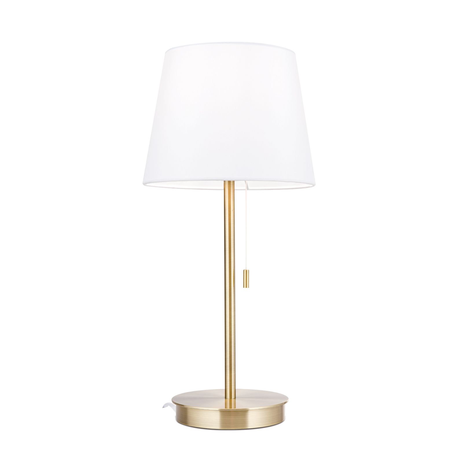 LUDWIG ist eine unaufgeregt aber dennoch reizende Tischlampe, die jede Anrichte im Vorraum oder das Nachtkästchen beim zu Bett gehen, verschönert und über eine angenehme Lichtverteilung verfügt. Ob im klassisch oder modern eingerichteten Räumen - LUDWIG wird sein Plätzchen schon finden und ein treuer Wegbegleiter sein. Das Gestell ist in Satin gehalten und wird mit einem weißen Schirm kombiniert. Im runden Standfuß versteckt sich eine ganz nützliche Funktion, nämlich ein USB-Anschluss. So kann das Handy im Nu aufgeladen werden. Ein Ziehschalter ermöglicht ein blitzschnelles Ein- und Ausknipsen der Leuchte. Ausgestattet mit einer E27-Fassung wird sie mit maximal 40 Watt bestückt. In Kombination mit sparsamen LEDs wird LUWDIG jedoch Ihre Geldbörse schonen.