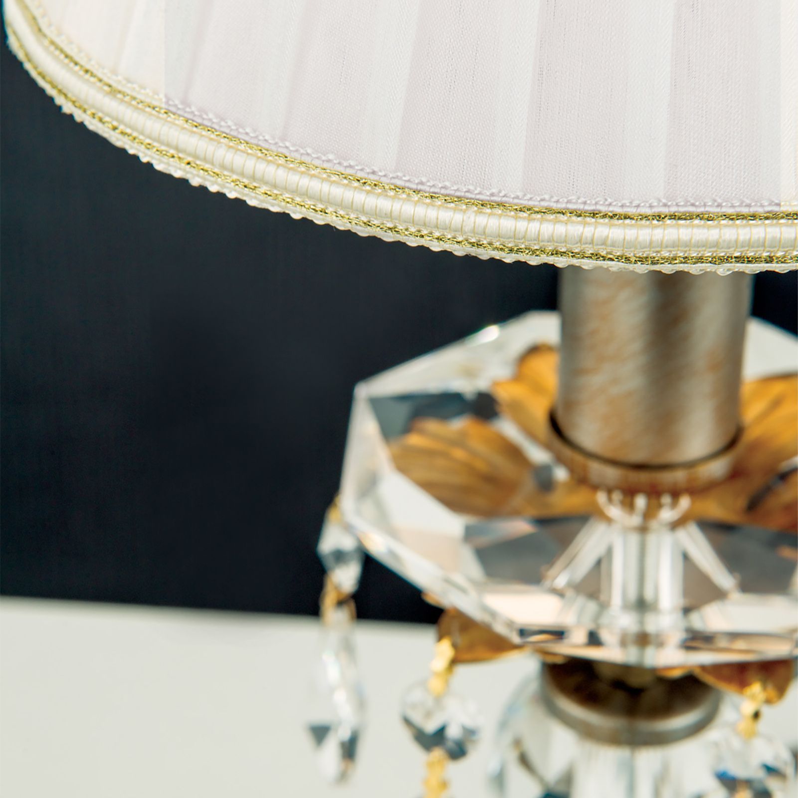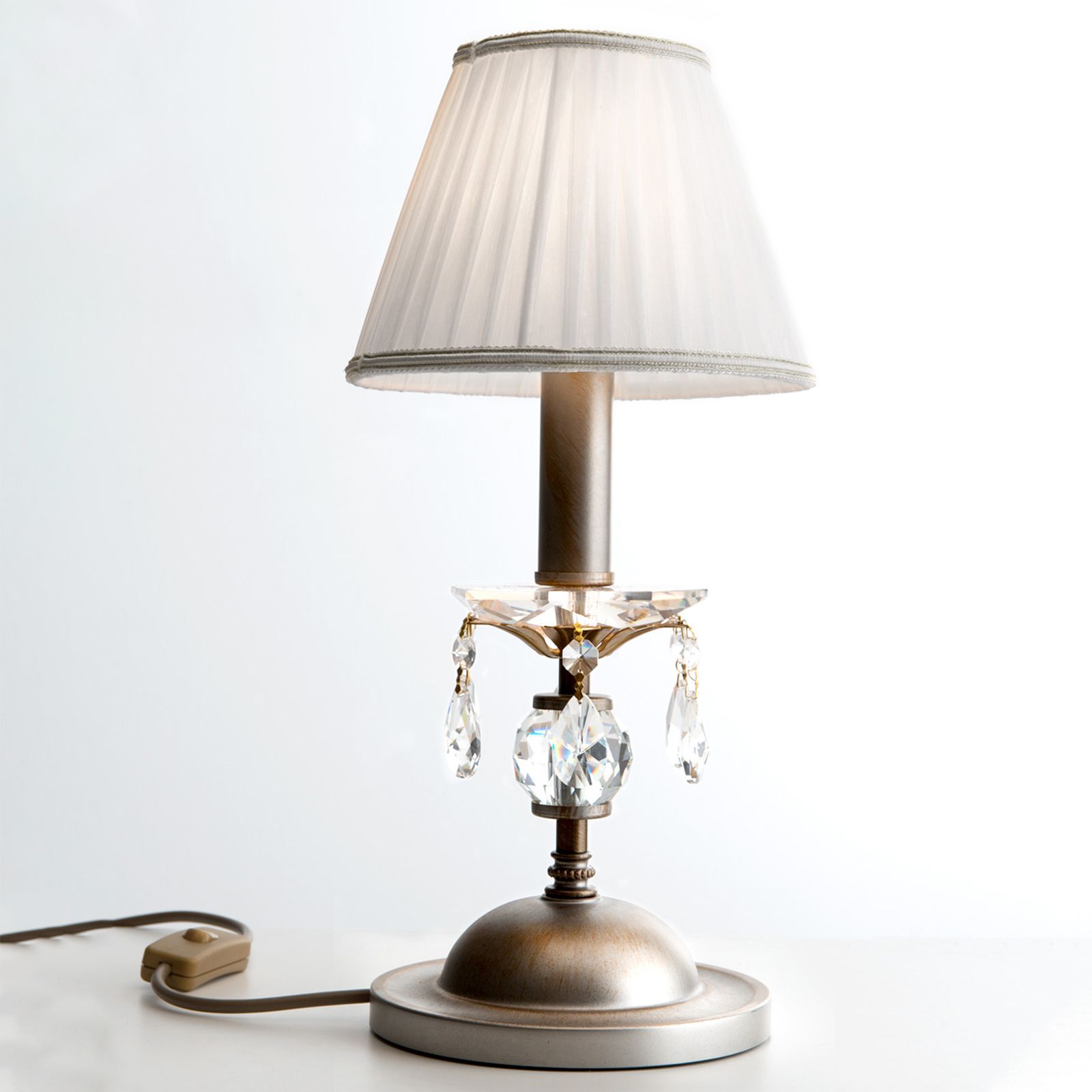 Die 1-flammige Tischlampe aus der MIRAMARE-Serie ist dank ihres kostbaren Kristallschmuckes ein Kleinod. Warmes Licht wird durch den plissierten Schirm gleichmäßig verteilt. Das Glitzern und Funkeln der Kristalle rankt sich um eine elegant geformte Blüte in der Mitte des Lampenschaftes. Der Korpus aus Vollmessing ist mit handbemaltem und handschattiertem Silbergold versehen. Ein kleines Antiktischchen neben einem Lesesessel eignet sich für dieses kleine Lichtjuwel genauso sehr, wie ein modernes Sideboard oder eine Vorzimmerkommode. Die Leuchte verfügt über eine E14-Fassung für maximal 40 Watt.