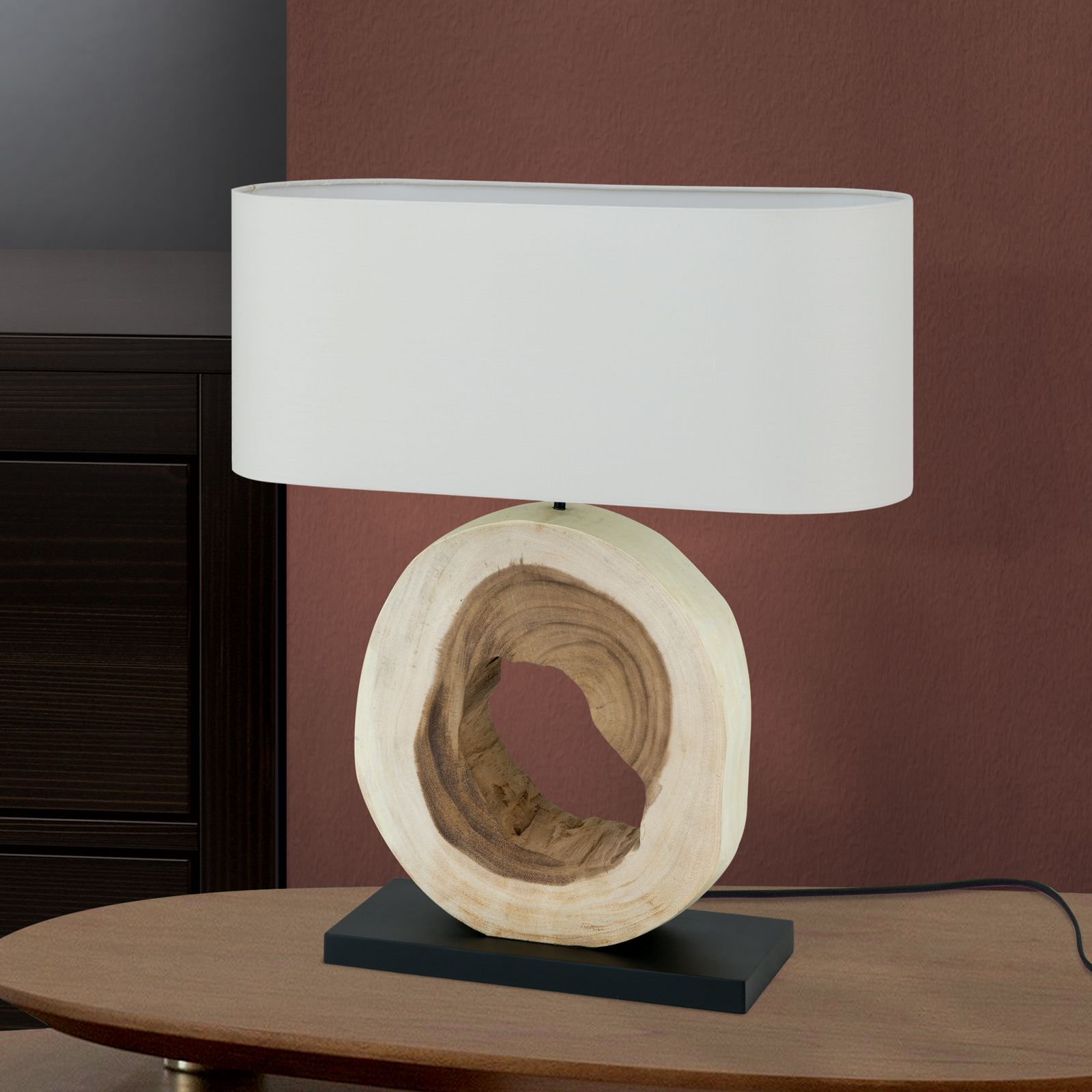 Tischleuchte NATHAN, Naturholz mit weißem Stoffschirm