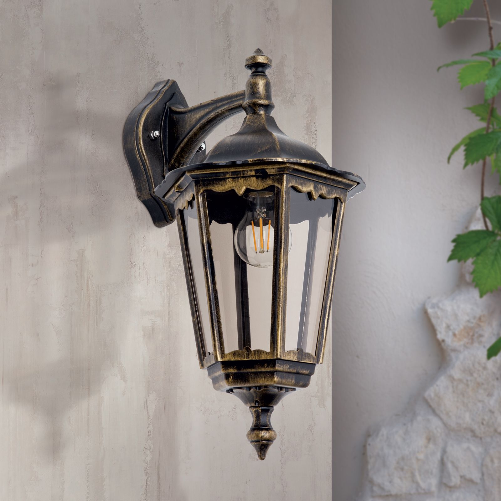 Wandaußenleuchte PUCHBERG, Schwarz-Gold, abwärts