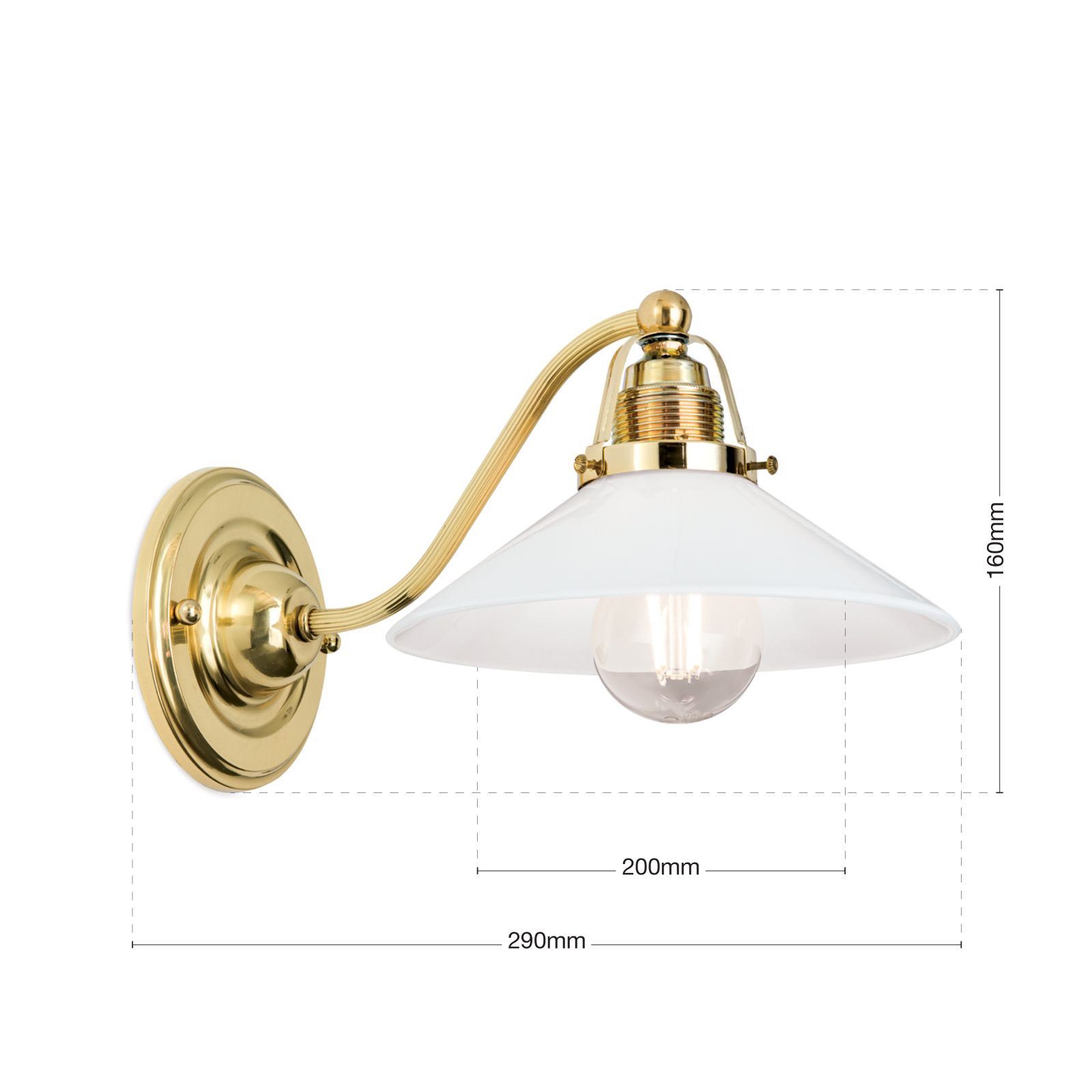 Wandleuchte ARTDESIGN, 1-flammig, Messing glänzend, mit Opalglas